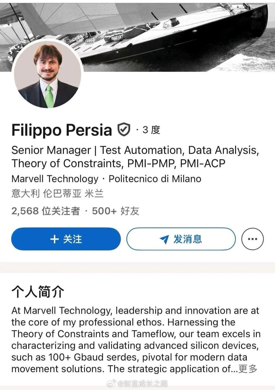 Filippo Persia 是 Marvelll Technology 的测试自动化专家,他在社交平台上转发并支持 ficonTEC 的动态,是因为ficonTEC 的技术 (特别是 ficonTEST 业务) 对 Marvell 的芯片测试至关重要。
