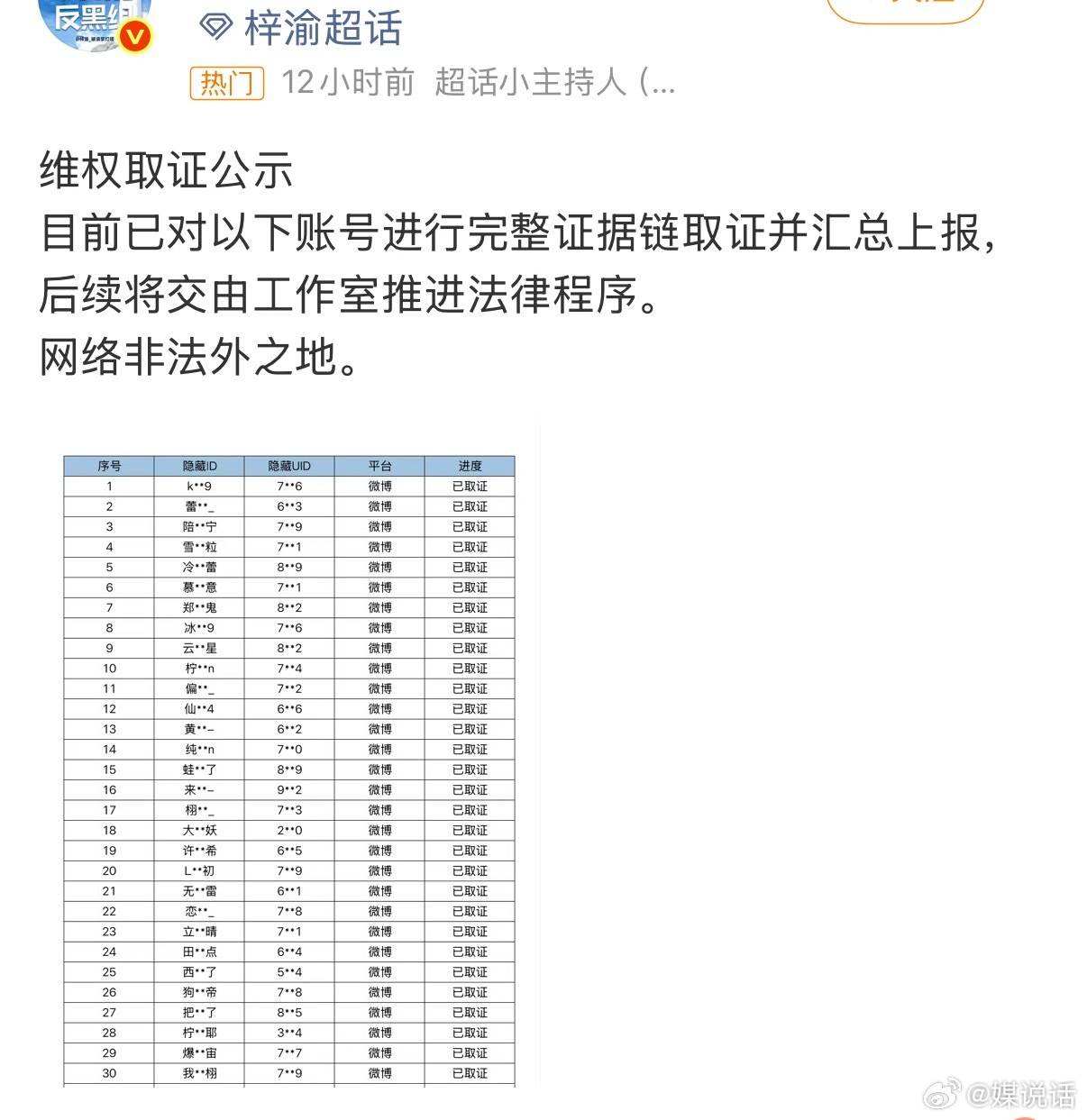 梓渝维权取证公示 梓渝方已完成40个账号的告黑取证公示,支持梓渝维护自身正当合法