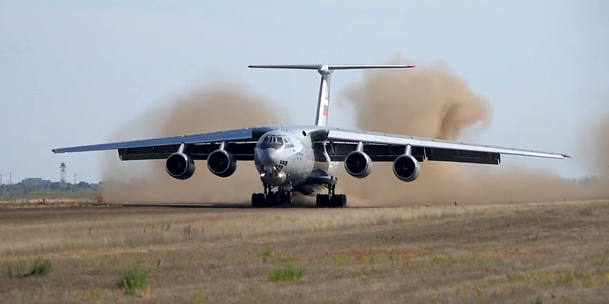 烽火问鼎计划每天认识一件兵器 图1:伊尔-76在完全未经工程平整的平坦草地上降落(早期记录,时间未知)图2:伊尔-76在未铺装跑道上起飞(早期记录,时间未知)图3:伊尔-76MD在米-24的近距离护卫下执行未铺装跑道起降演习(2019年)图4:伊尔-76MD-90A原型机进行未铺装跑道起降测试(2023年)