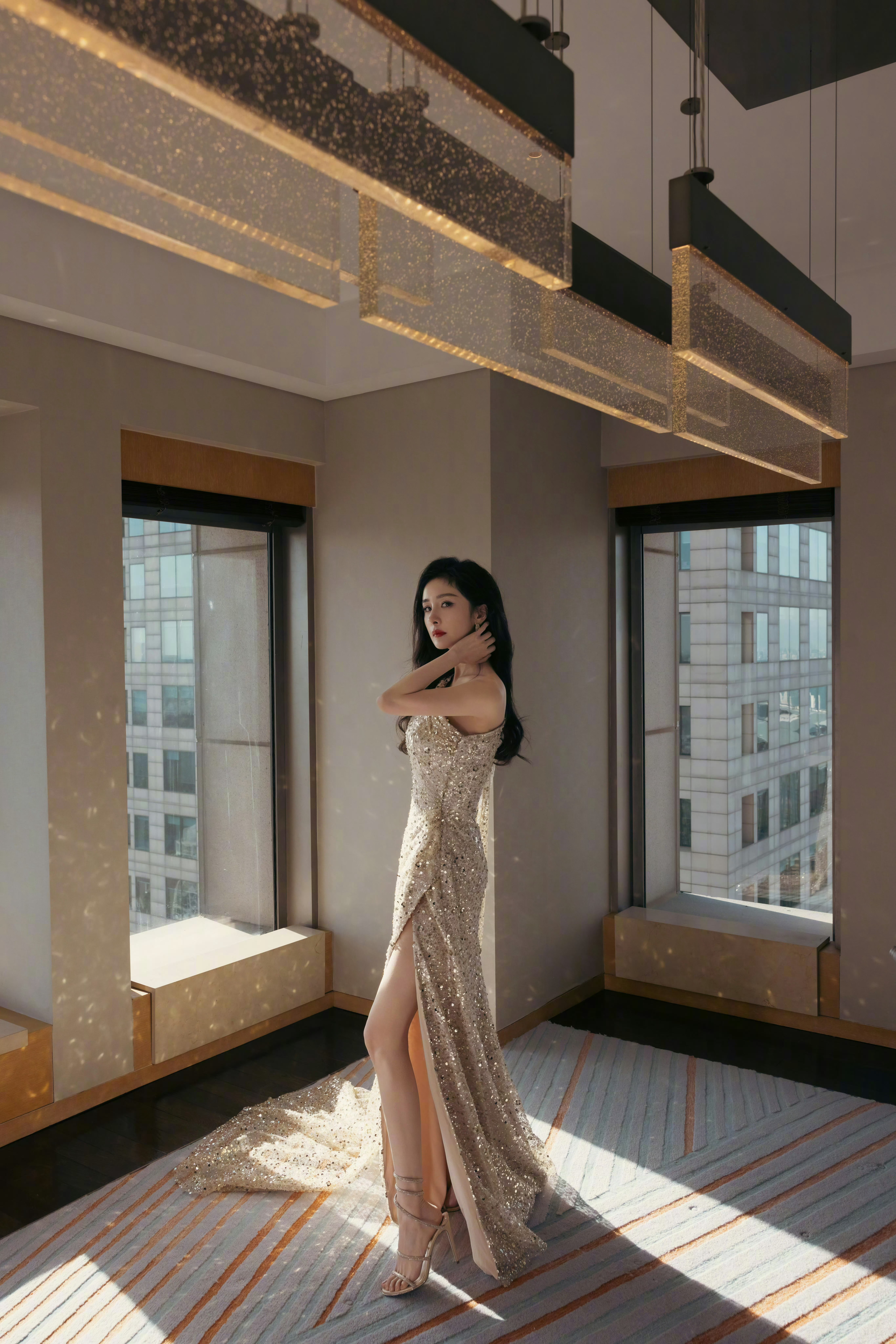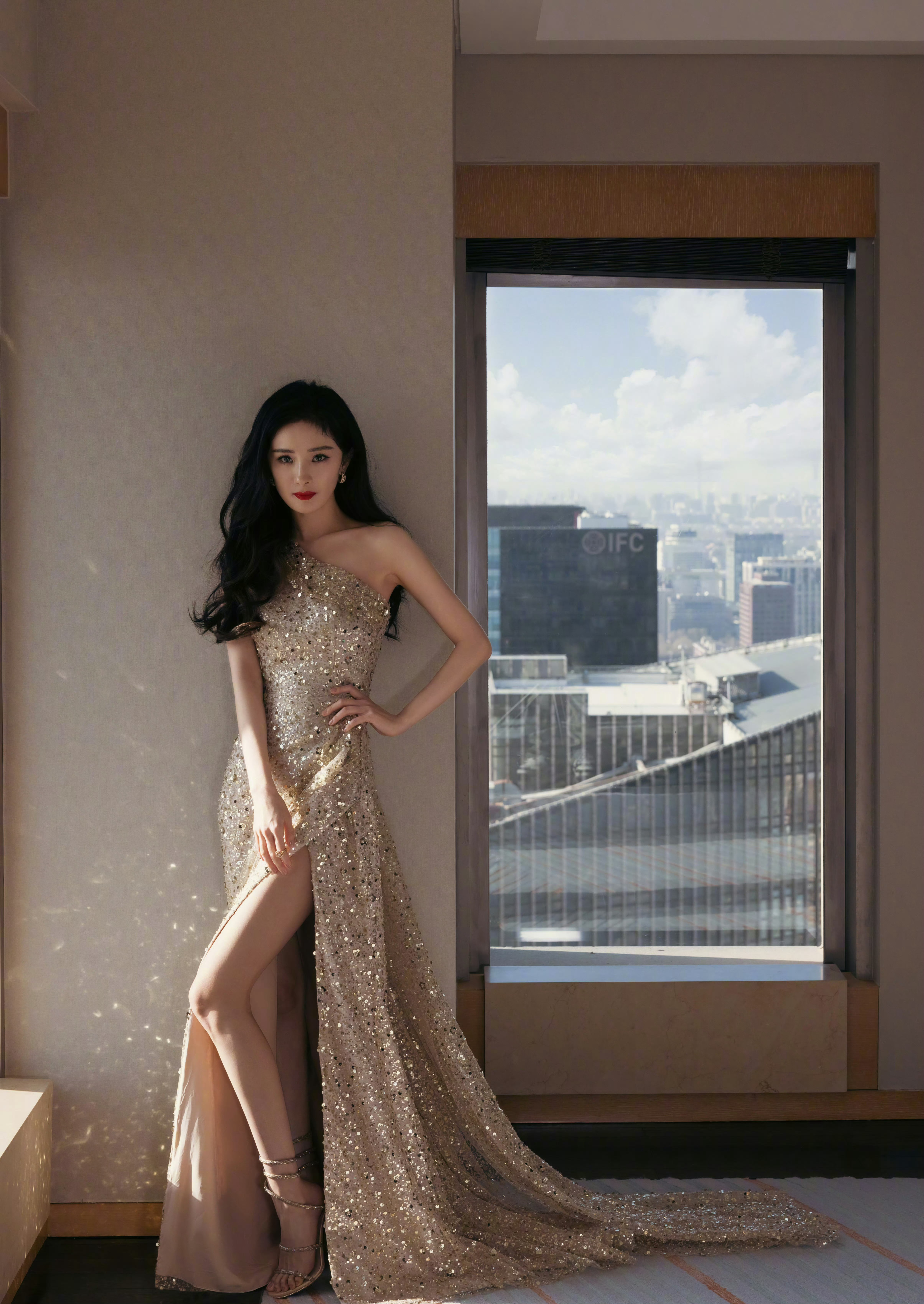 杨幂 x 金色披肩礼服&佩戴黄金珠宝气质非凡