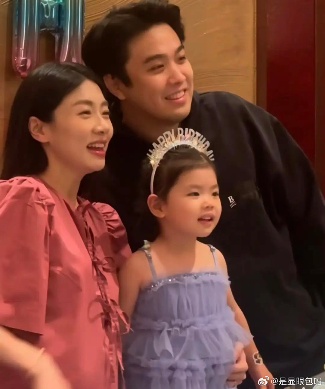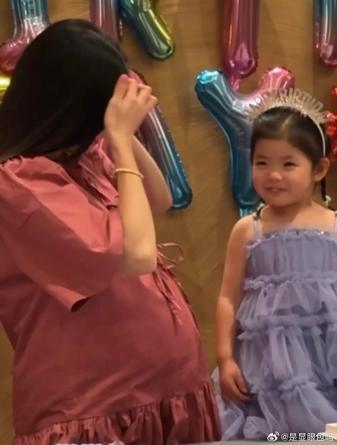 程晓玥二胎快生了,她挺着大肚子为女儿胖豆庆祝3岁生日,富二代帅老公也出镜,一家三