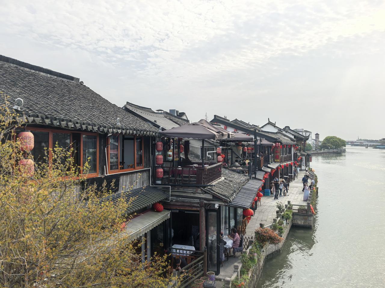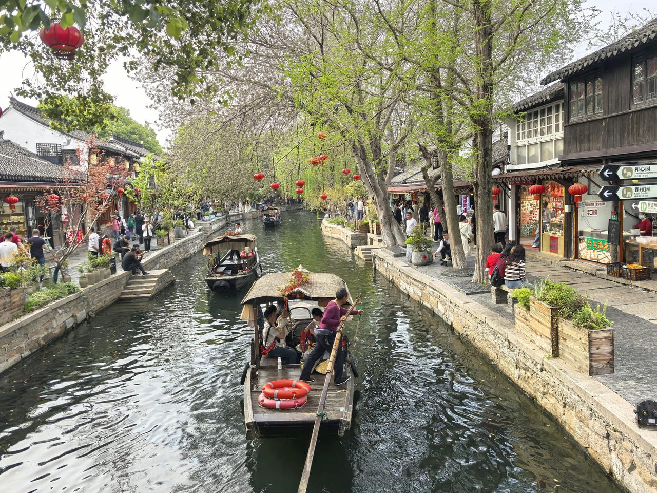 [微风]临江仙·朱家角水乡行 碧水 穿街浮画舫,白墙 黛瓦临江。 檐边红缀灯笼双。 棹声轻逐浪,人影立斜阳。 漫倚 阑干听软语,风携 古意悠长。 沪郊烟火入诗行。 闲云轻绕岸,醉此好时光。 [微风] 2026/4/6