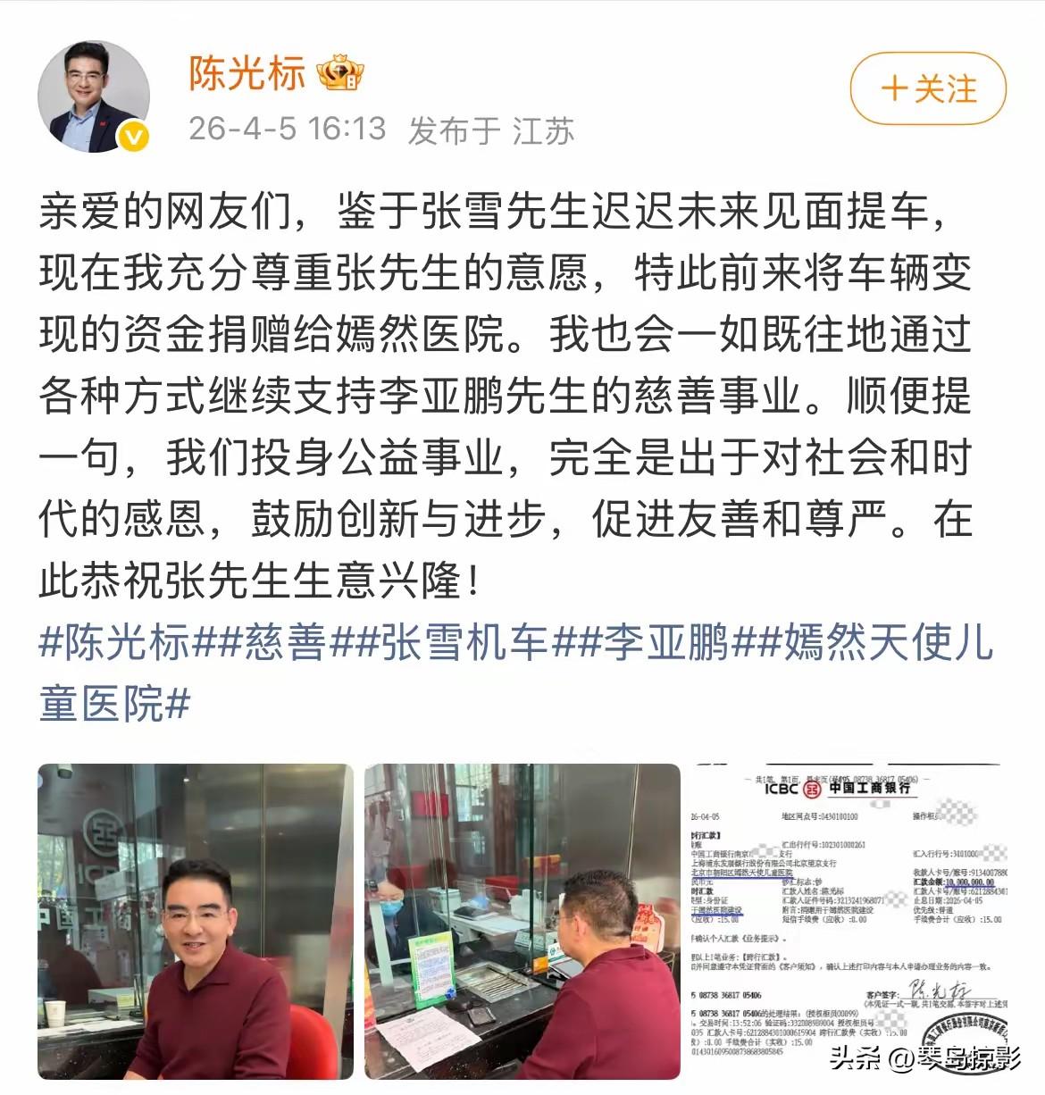 张雪这件事办得漂亮,从准备将赠车以二手车八折售价捐赠嫣然医院,到标哥按照张雪意愿将1000万汇款嫣然,总共才几天时间。张雪全程没有经手,标哥全部办好,都是信守承诺的汉子,李亚鹏说信张雪,看来是信对了。
