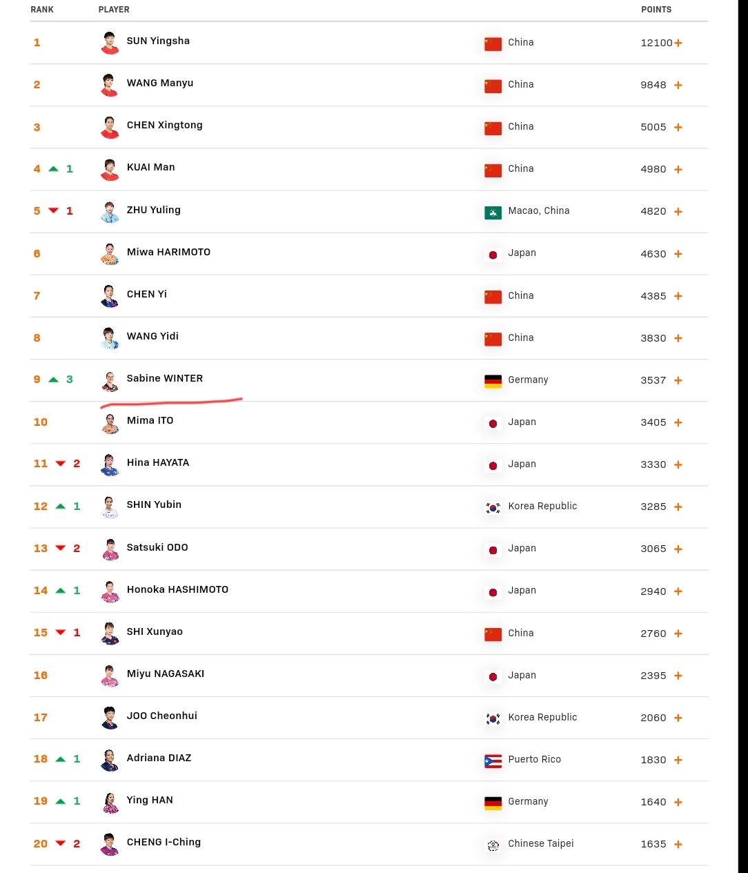 国际乒联第 15周排名公布。 男单前十中,国乒只剩王楚钦林、诗栋两位了。 向鹏从第9位降到第 17位。 女单前十中,温特成了唯一的非亚洲选手。 而且在前20排名中,非亚洲选手只占了三位,说明女单亚洲的优势太大了。