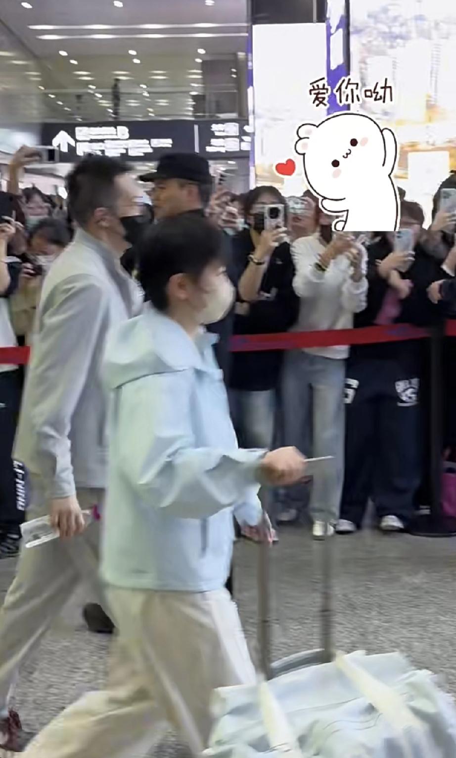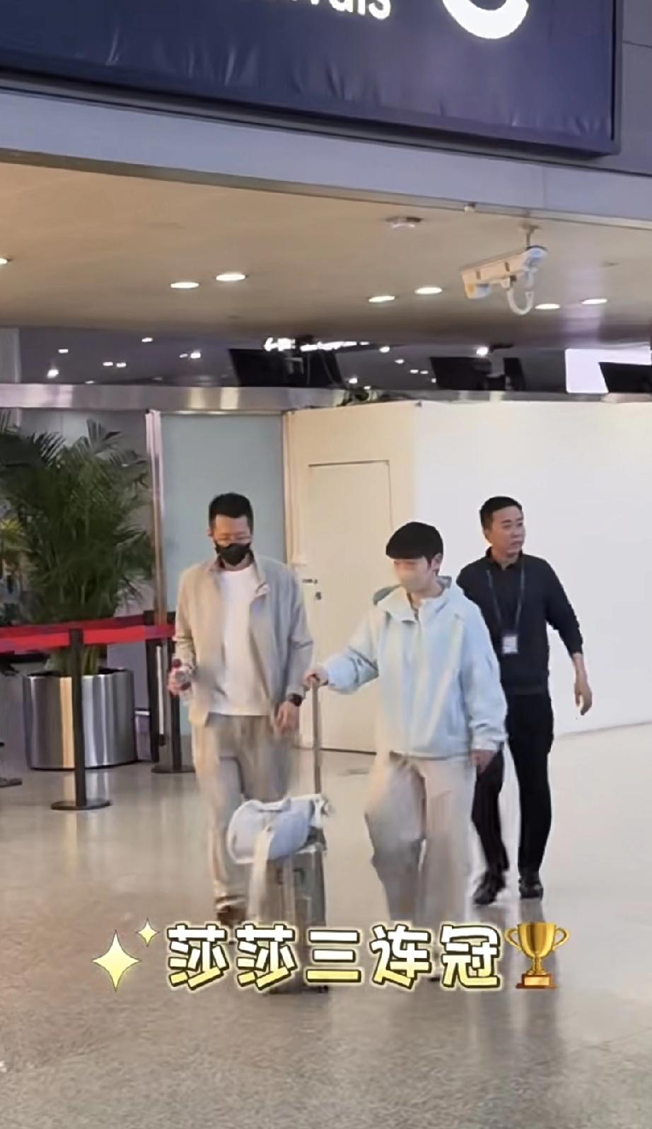 莎莎到成都了,机场很火热。 大家都在莎莎出口的地方等着。粉丝看到莎莎就高呼“莎莎三连冠!”她上衣浅色外套,下面是宽松的运动裤,配上白色运动鞋,戴上可爱的棕色口罩,感觉莎莎真的好小好可爱。就像一只行走的猫咪。 整套衣服都很清新风,衣品真好!下一步就是在成都封训了,好好休息,伦敦见!