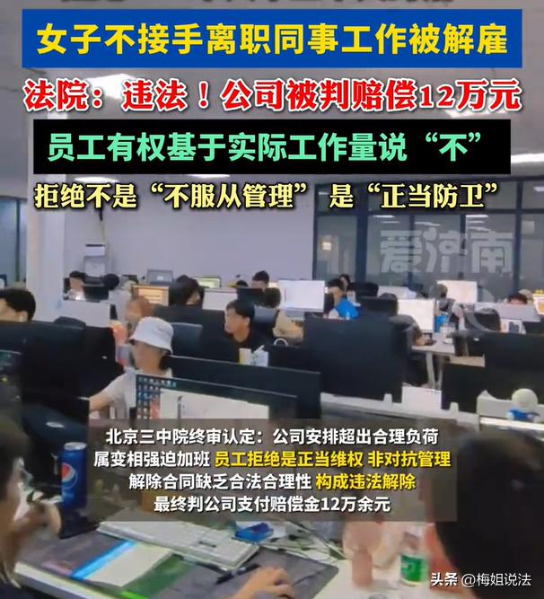 客户从18个变成52个,加班成了常态。 然后公司说,再来一个同事的活儿。 高女士说,我饱和了。 公司说,你违纪了。连发两份警告。 她再说一遍饱和。 公司说,你被开除了。 这不就是“能者多劳”吗? 你以为这是赏识,其实这是最隐蔽的服从性测试。测的不是你的能力,是你敢不敢说不。 第一次接同事的活儿,从18到52。她没吭声,想着接了就好好干。 第二次又来了。她心里那根弦终于绷断了——这次再点头,明天就得睡公司。 可公司不这么看。一句“工作量饱和”,在他们眼里就是“拒绝正常工作交接”。 两份警告拍在桌上。 开除通知紧随其后。 说白了,这不是工作安排,这是权力展示。一个岗位塞进三个人的量,你要么累死自己,要么滚蛋。 他们赌的就是你不敢说那个“不”字。 高女士说了。 代价是12万9的赔偿金,和一份再也回不去的工作。 看着那份判决书我在想,到底谁赢了? 公司输了官司赔了钱。高女士拿回了补偿,但职业生涯里永远刻上了“因拒绝工作被开除”的印记。 而更多还在岗位上的人呢? 他们看着这个新闻,默默把到嘴边的“饱和”咽了回去。 把“饱和”说出口的那一刻,工作才真正开始属于你。 但有多少人,敢让工作真正属于自己?