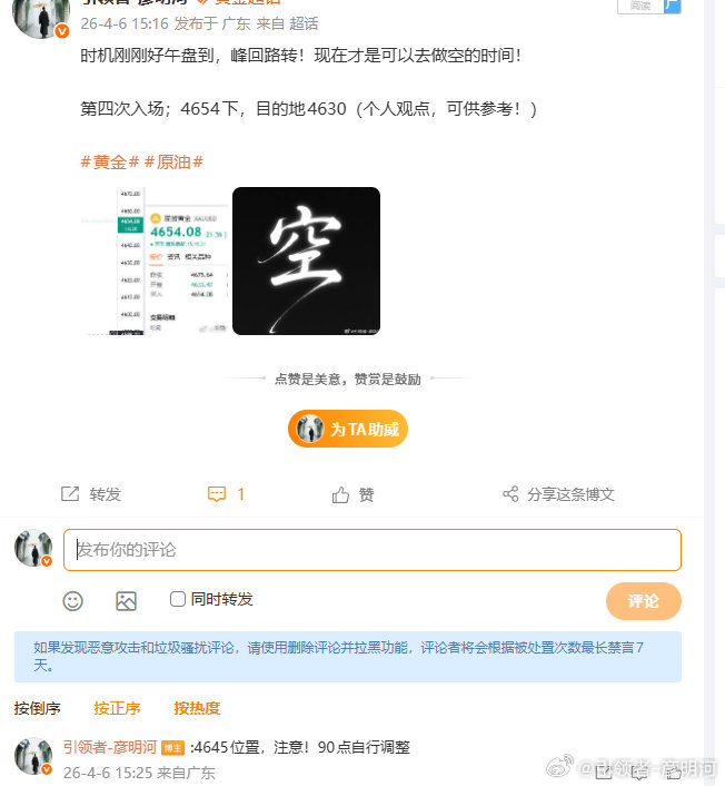 这波拉线确实强势,没有去到我们期盼的4630位置!不过也无伤大雅,给出的4654下早已在4645位置提示调整,目前拉回扫出我们安全位,拿下90点空间!