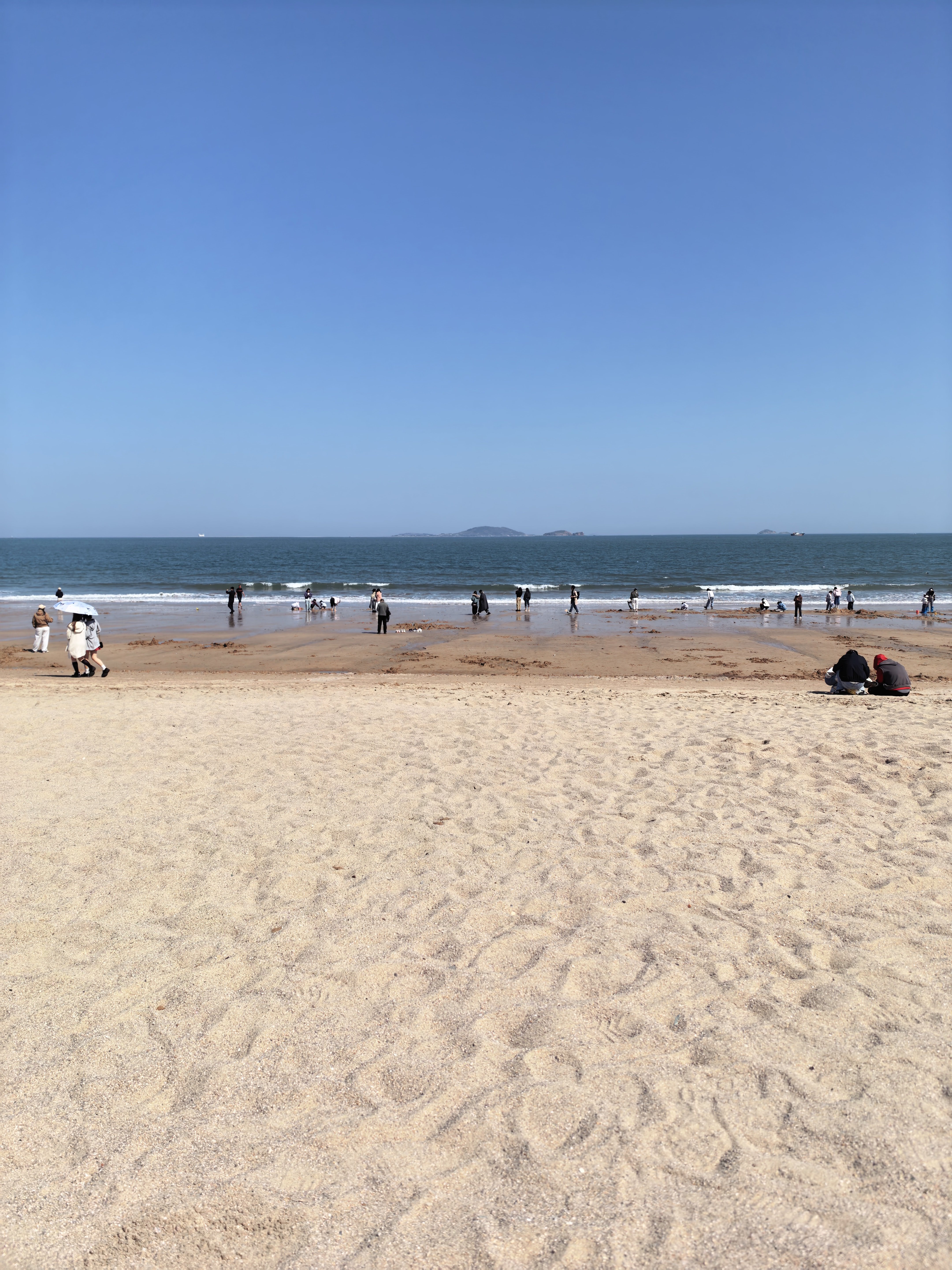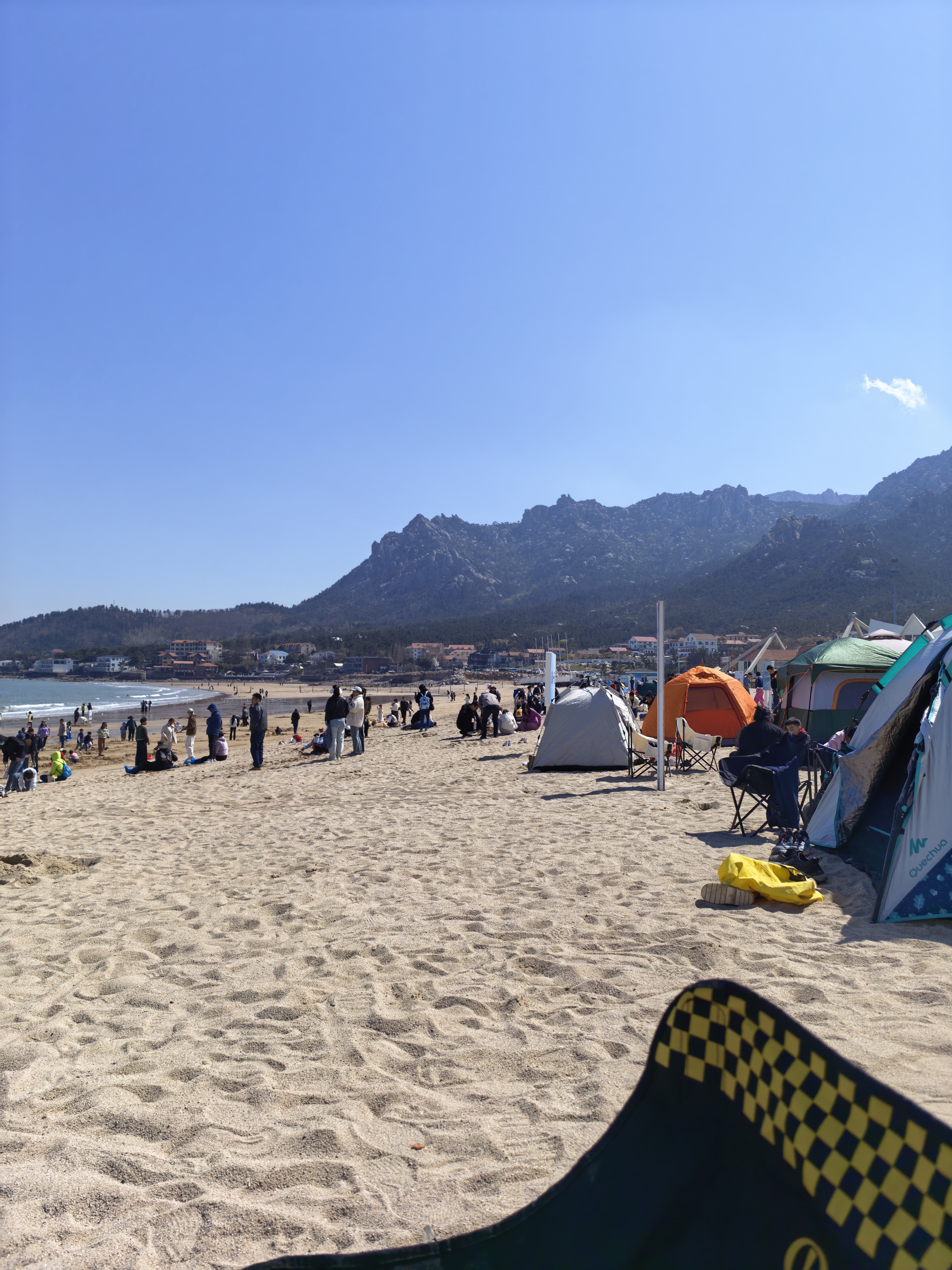 今天换了个海滩,仰口这边人更少也更干净。再往前走走就是崂山景区的起点了,很适合团