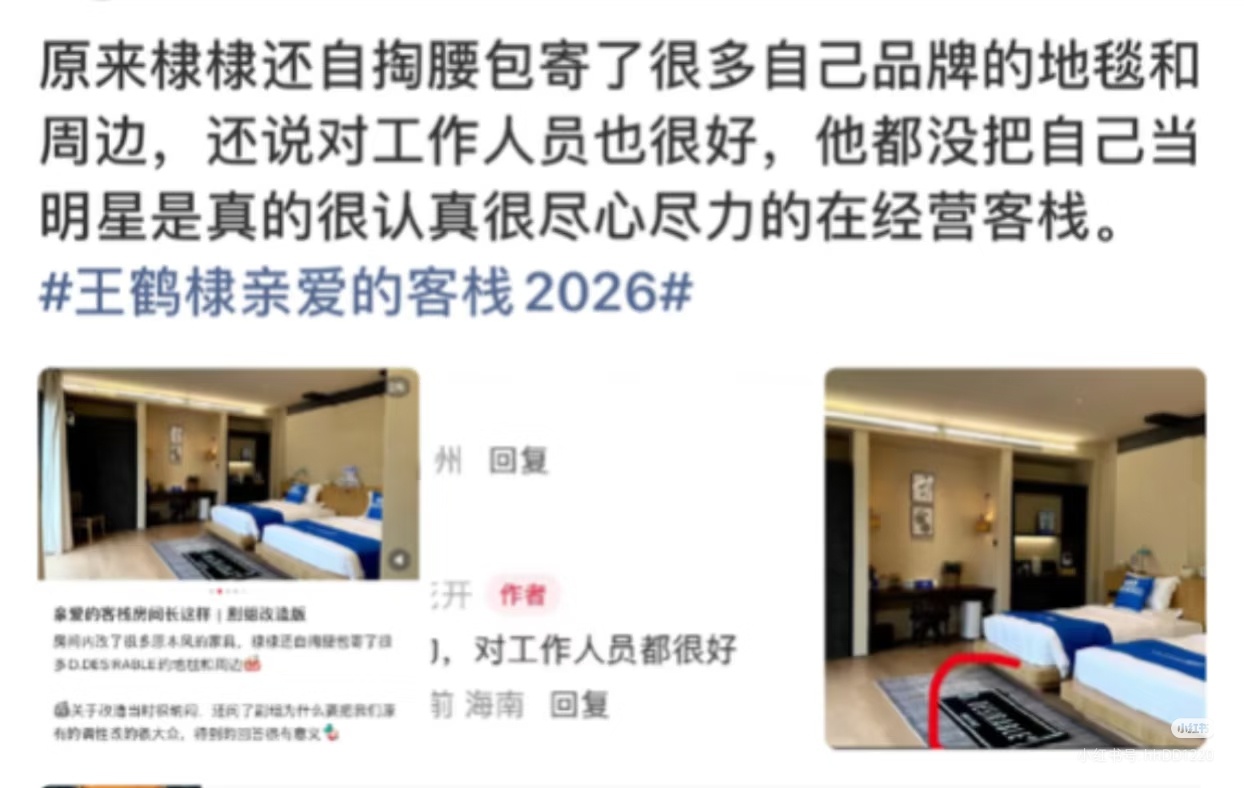王鹤棣打掉私生手机王鹤棣亲爱的客栈有王主理人真好原来棣棣还自掏腰包寄了很多自己品牌的地毯和周边,还说对工作人员也很好,他都没把自己当明星是真的很认真很尽心尽力的在经营客栈。