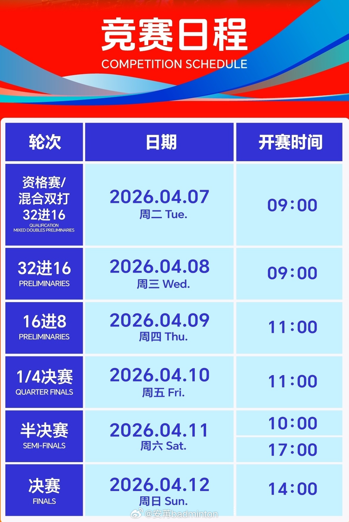 2026年羽毛球亚锦赛首日赛程(图1)最终签表(图2)开赛时间(图3)