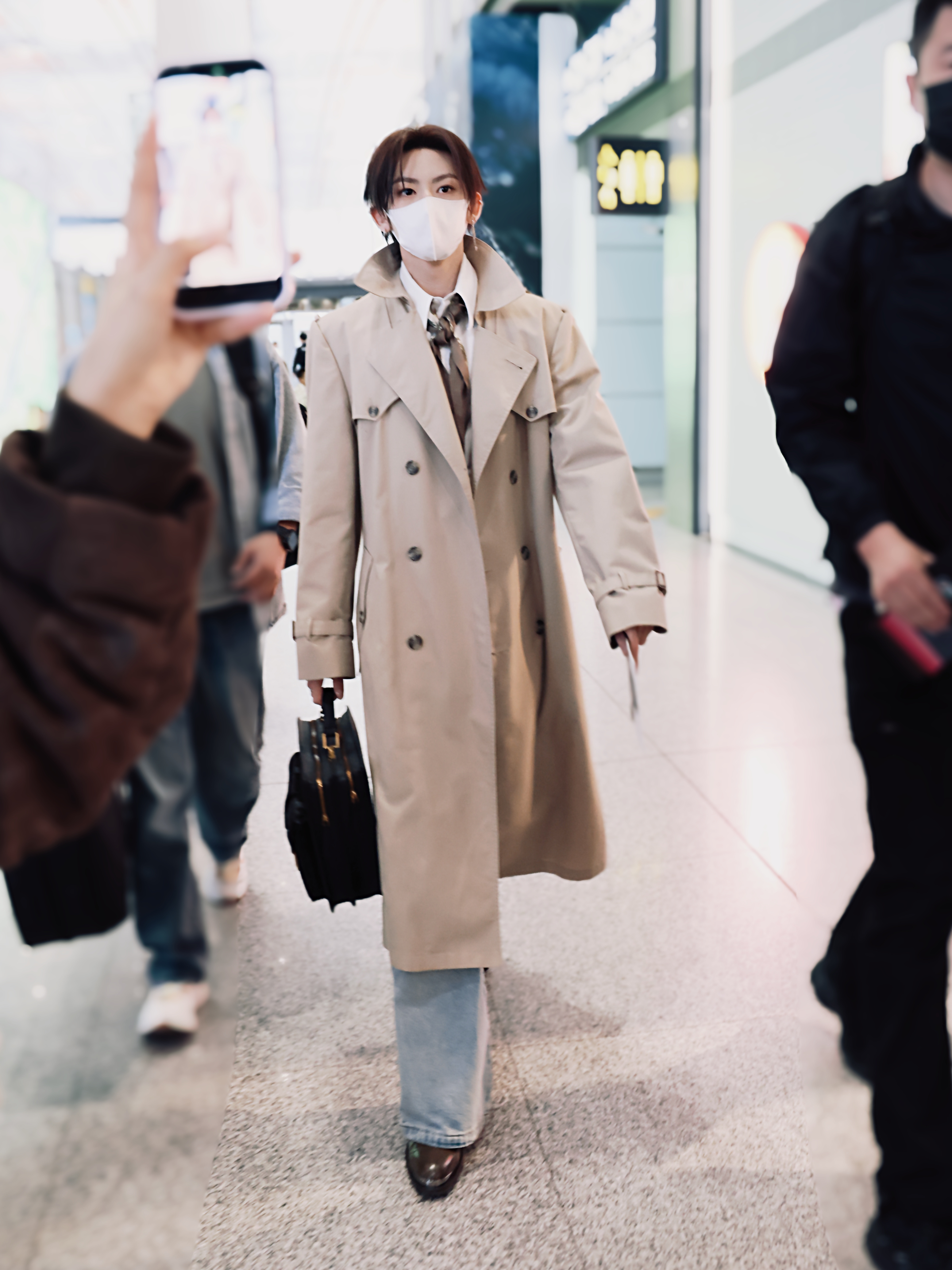小鬼是来走秀的吧 猜猜谁又把机场变秀场了…今天这套美拉德穿搭好有感觉!休闲的大衣和丝带的小巧思 机场图也质感爆棚 耳饰更是绝杀🥺🥺