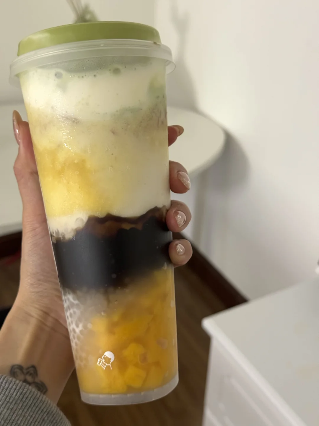 加了两份小料会自动升超大杯 !!! 椰椰芒芒➕冰沙➕少少甜➕苦抹云顶➕慢熬黑糖波波➕红柚果粒➕加倍芒果果肉 一口回到了5年前了 全是料好满足