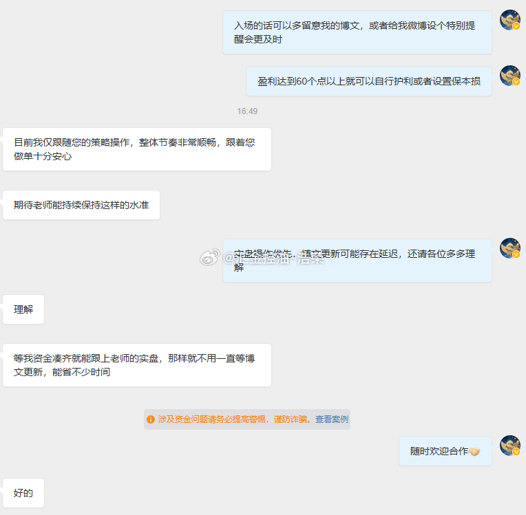 每日在微博分享交易策略,只为带领大家把握市场机会,共同盈利,共享喜悦。市场没有绝对,无人能保证策略次次精准。我能承诺的,是尽己所能、恪尽职守,以严格风控为前提,为大家创造稳健收益。做事先做人,合作的核心是互信。由衷感谢广大粉丝的认可与支持!投资之路,我将始终坚守本心,行稳致远,不负每一份信任。黄金 金价 原油 外汇