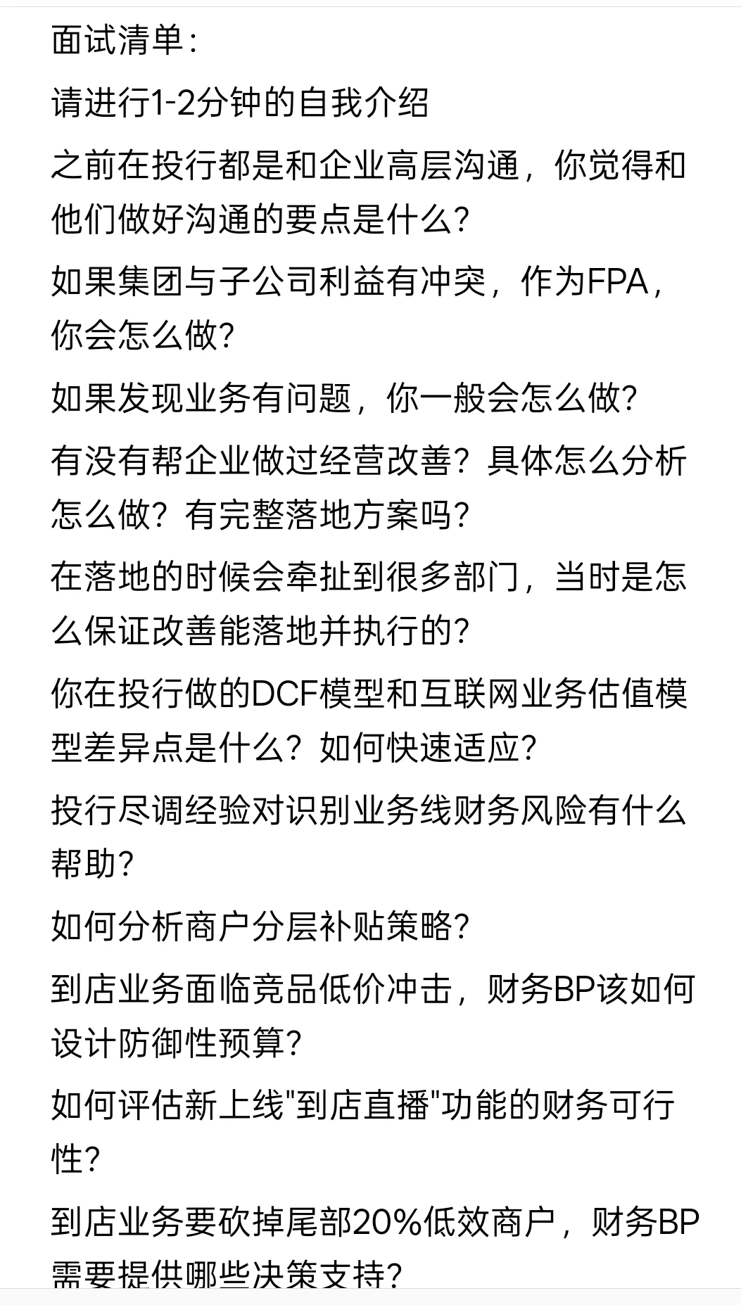 面试清单:
