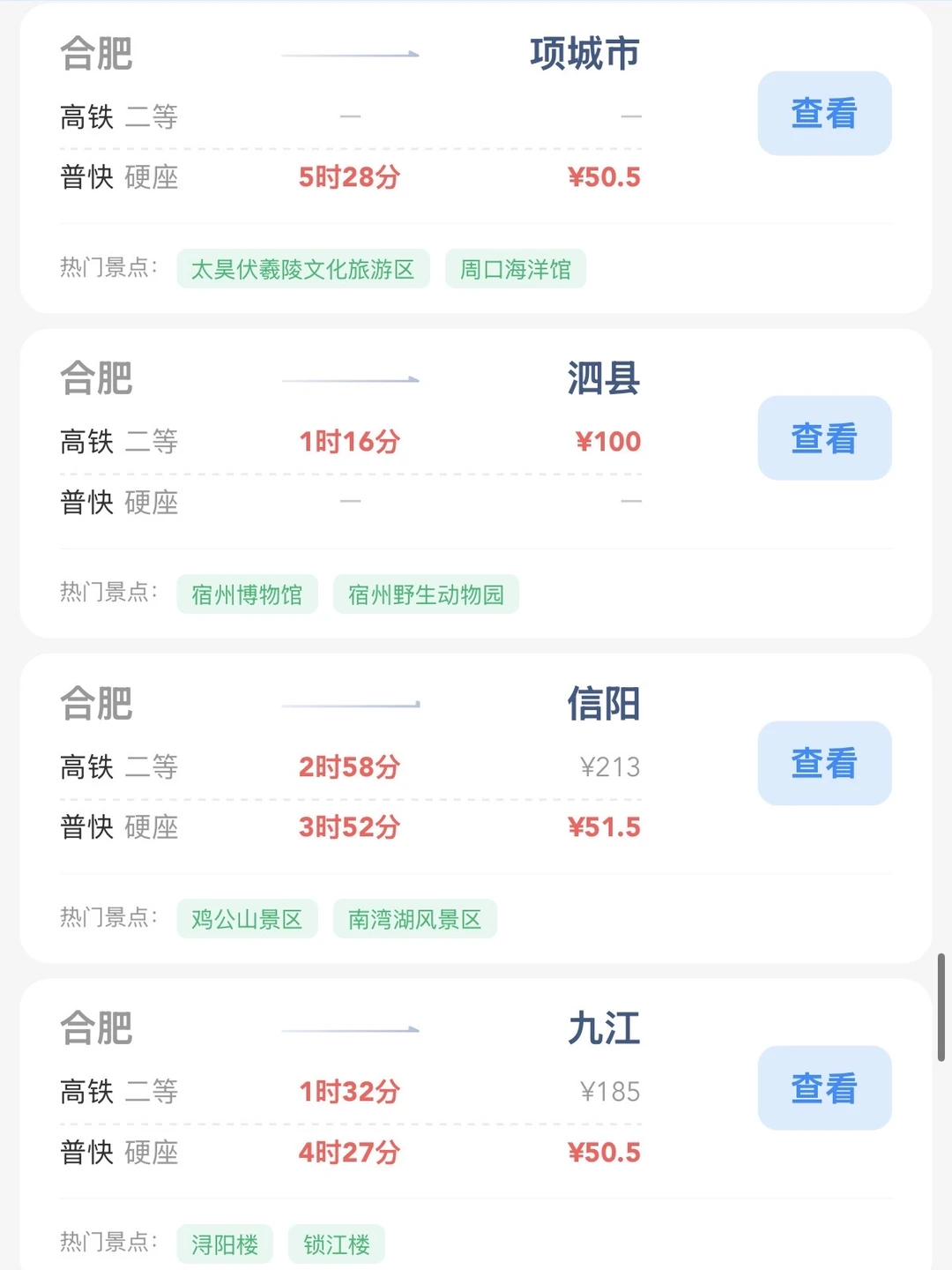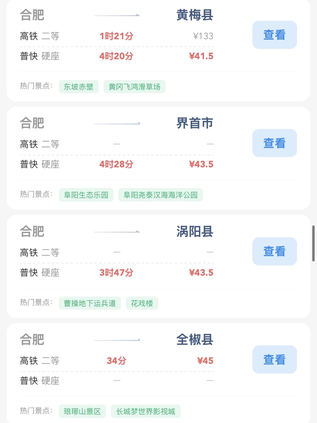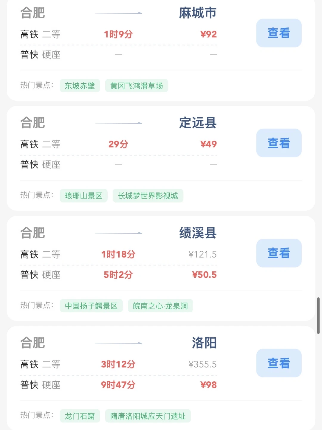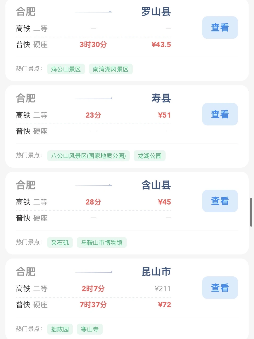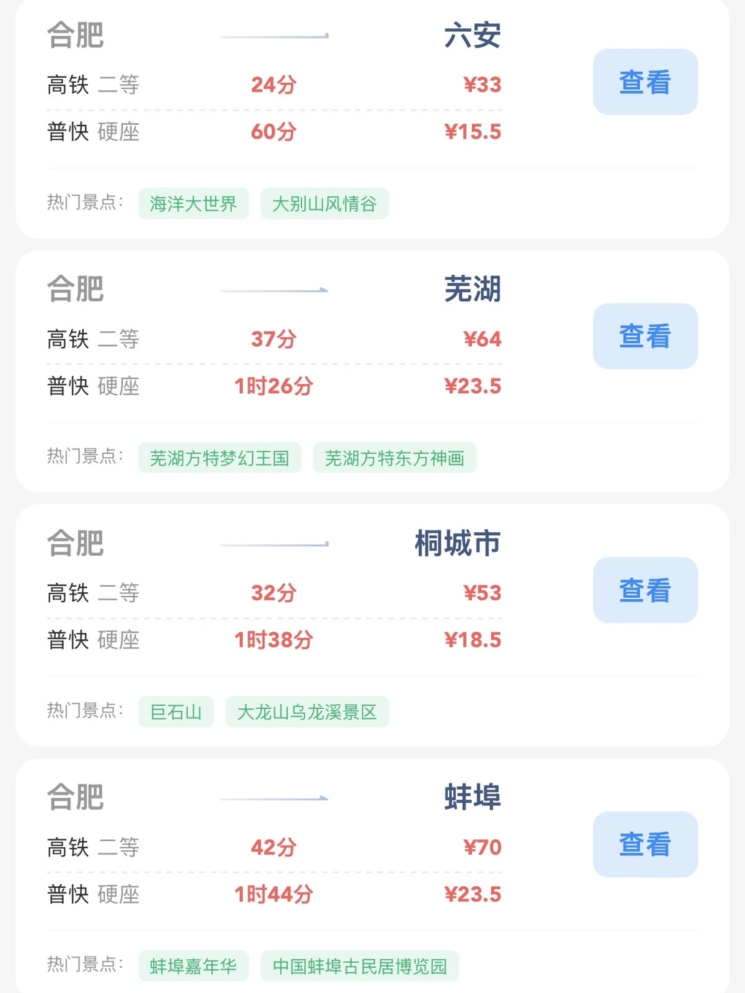 帮大家整理了一份合肥出发100块的火车票就能直达的旅游城市名单