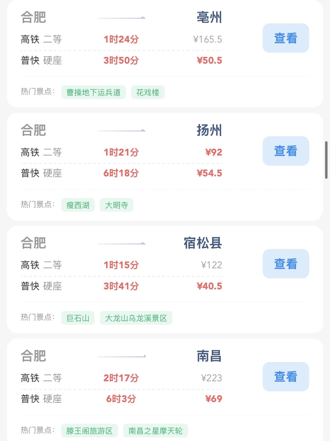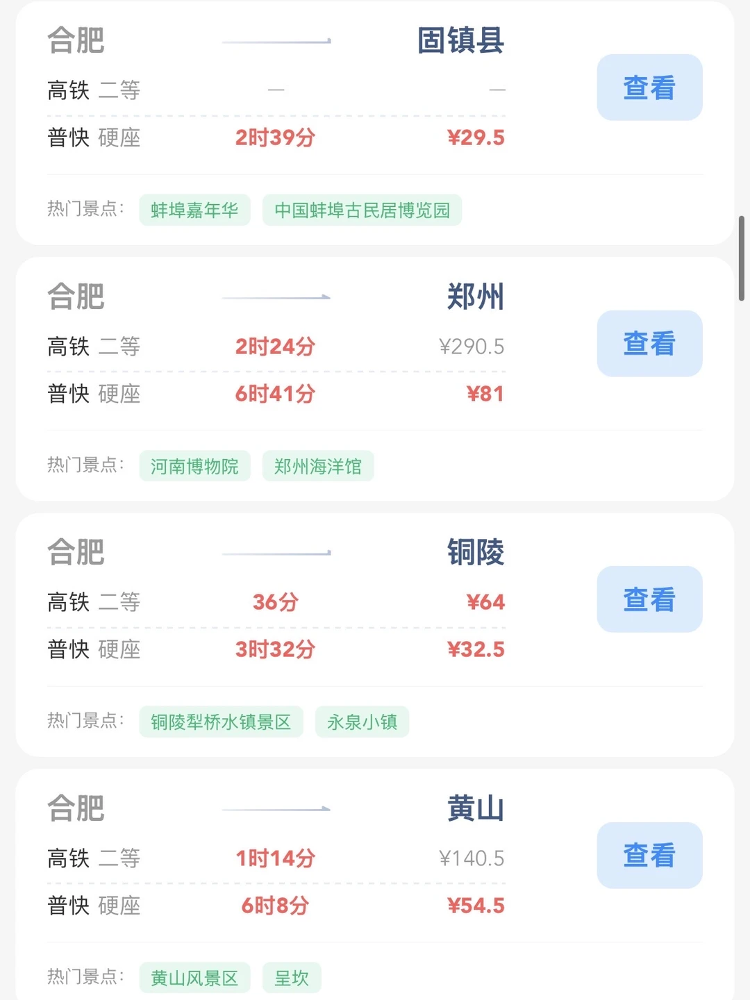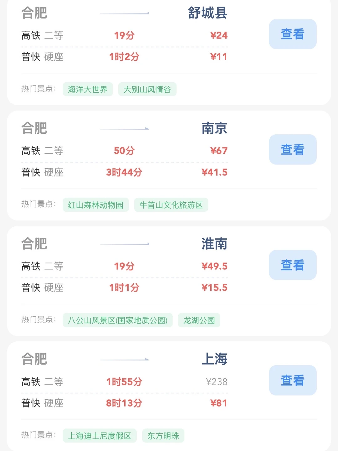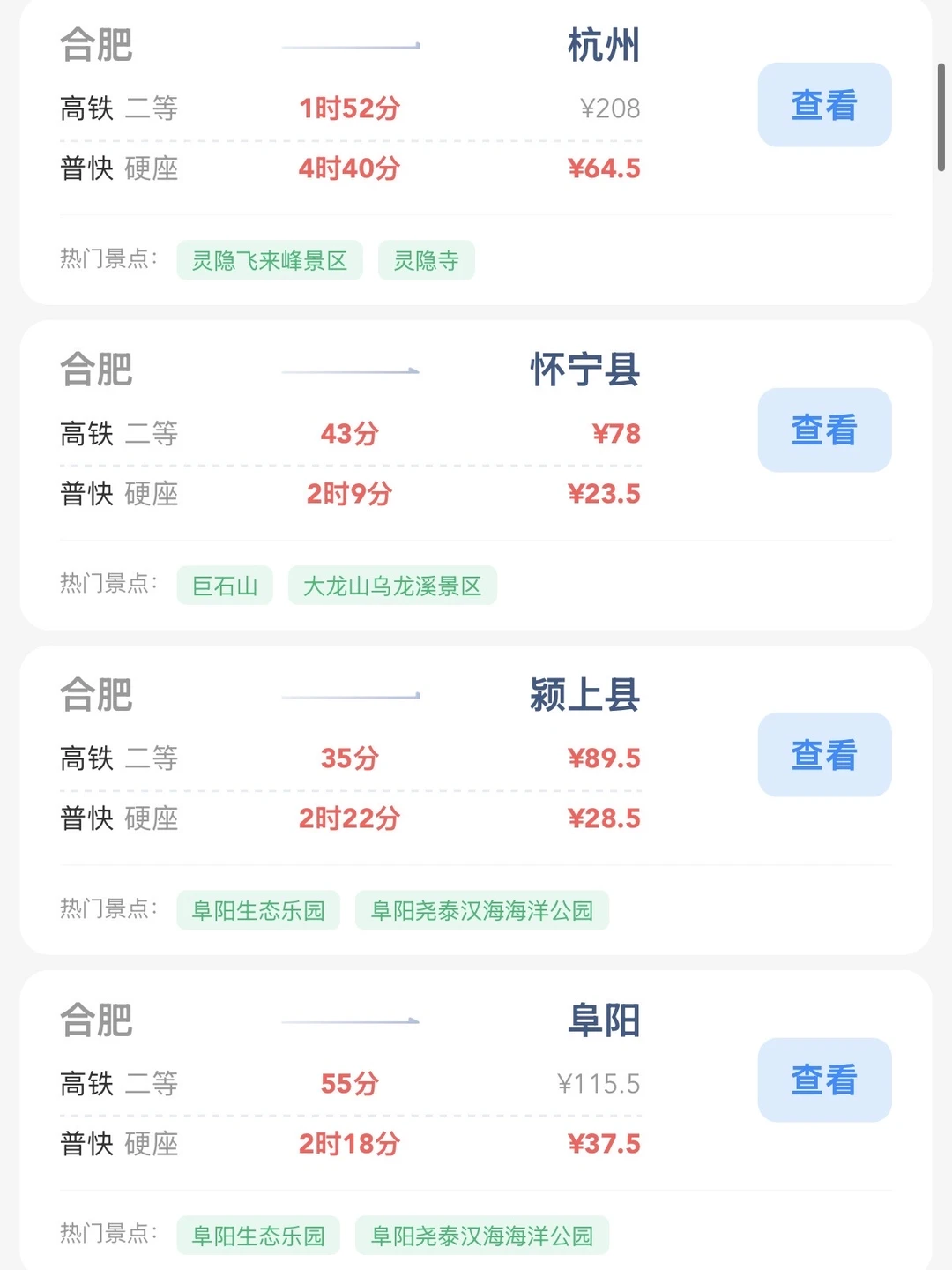 帮大家整理了一份合肥出发100块的火车票就能直达的旅游城市名单
