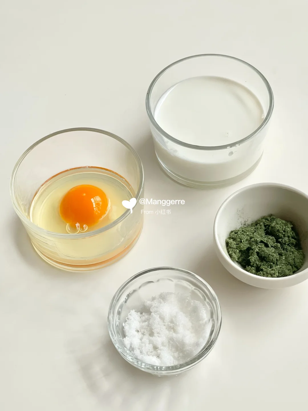 艾草粉10g、鸡蛋2个、牛奶250g、糖10g