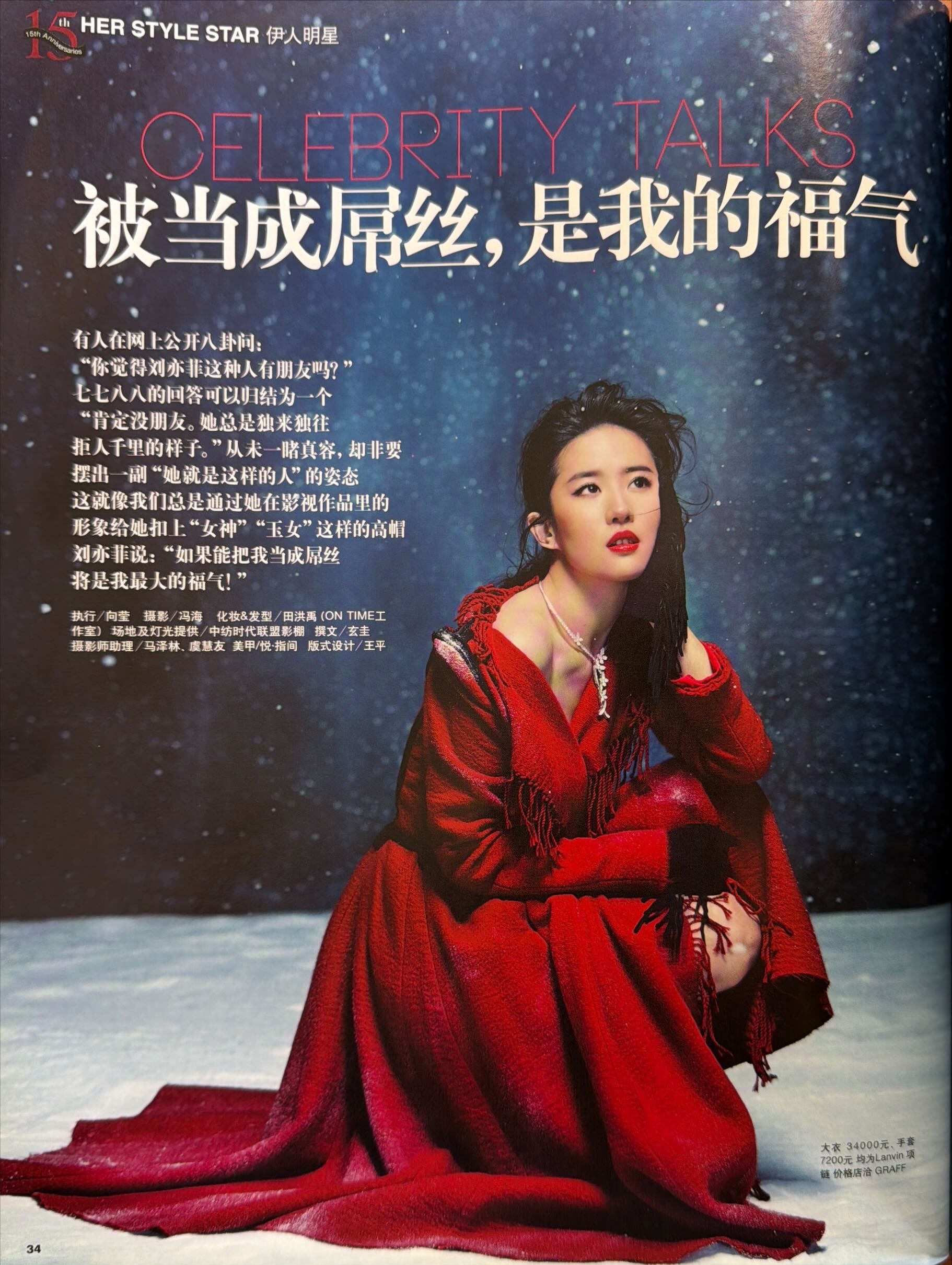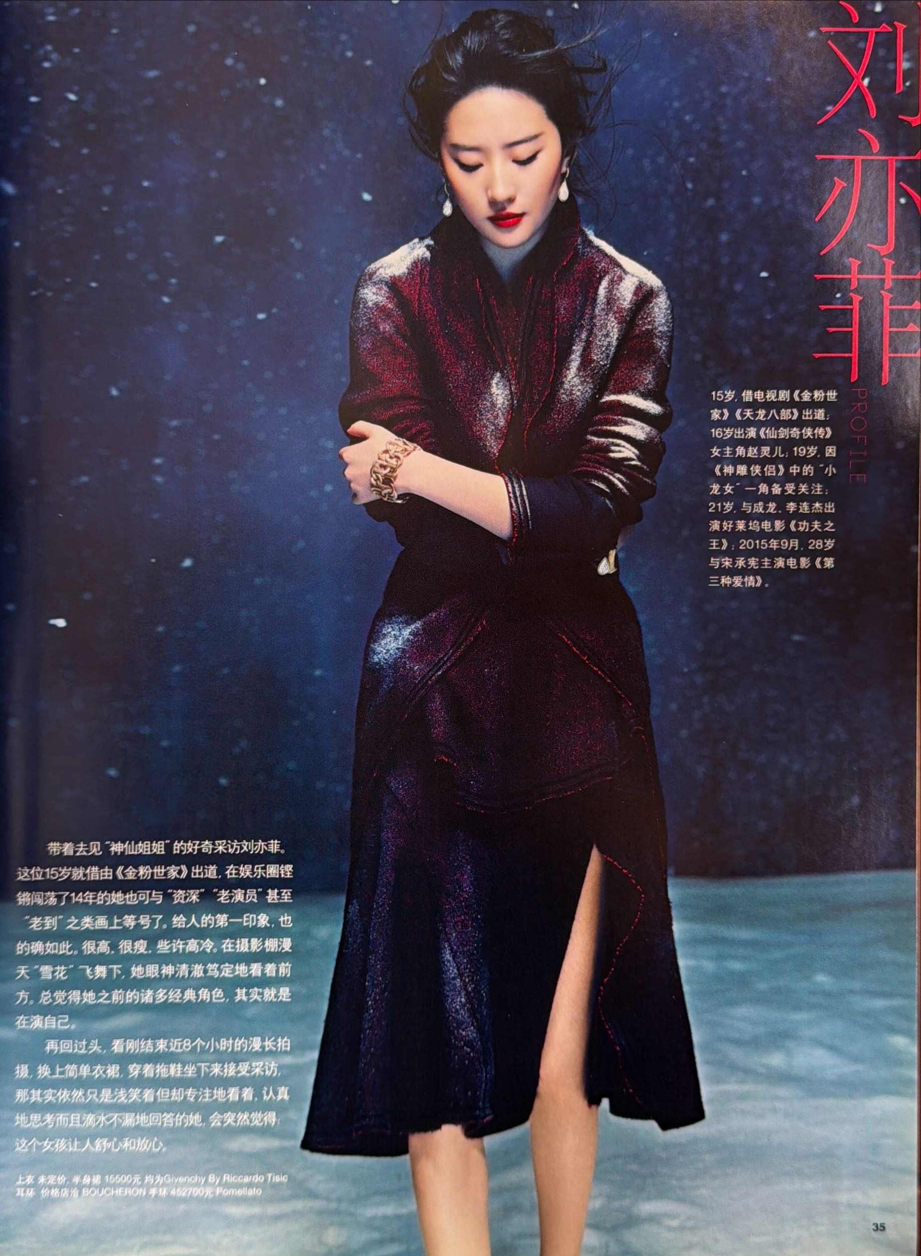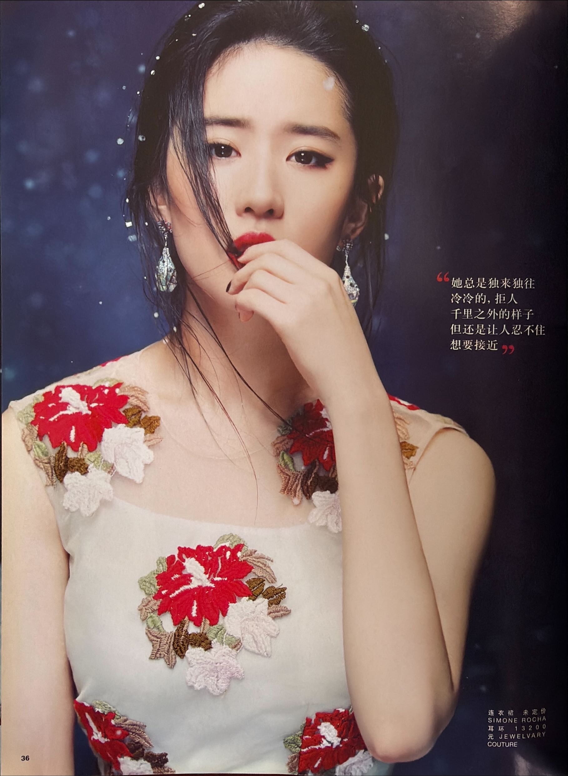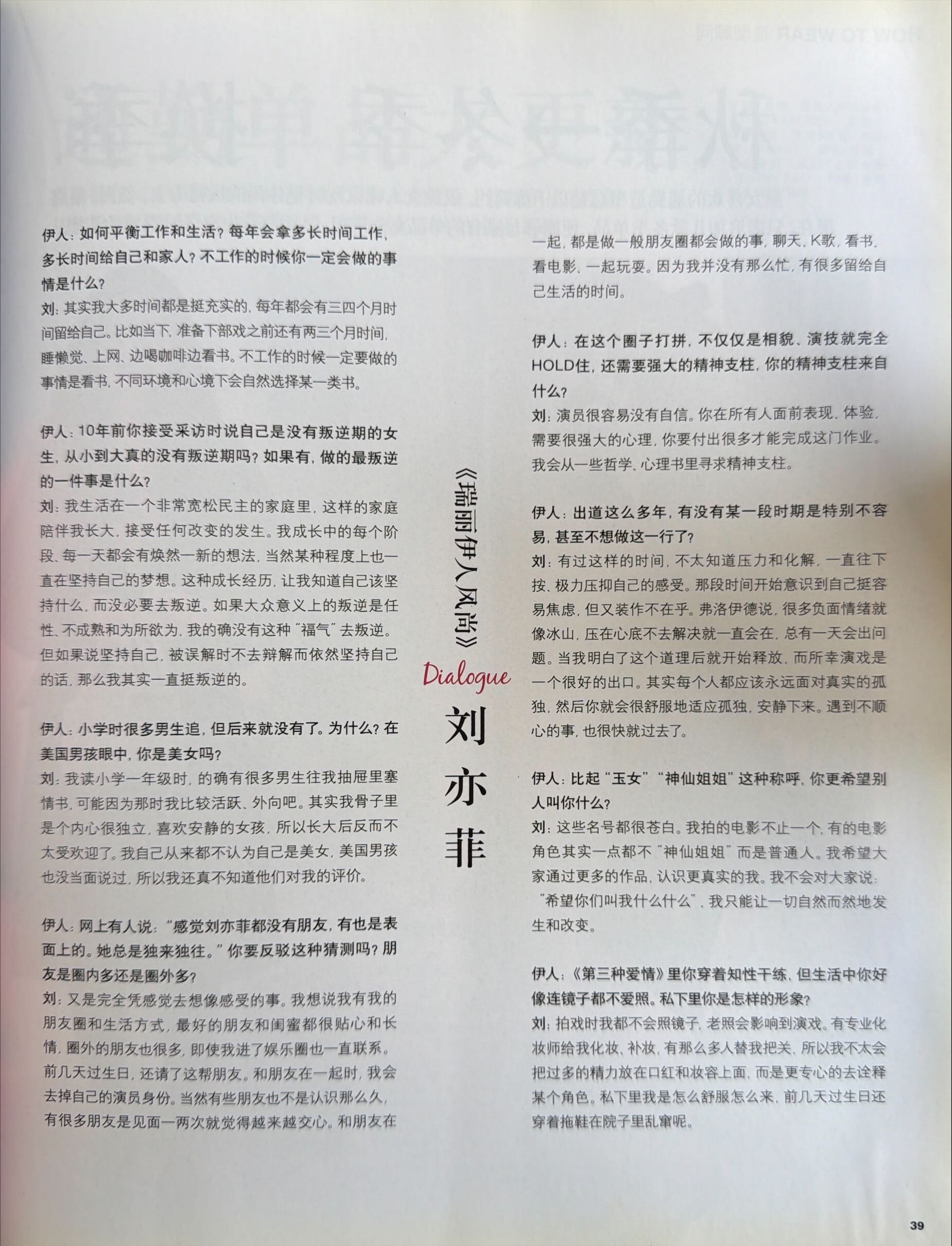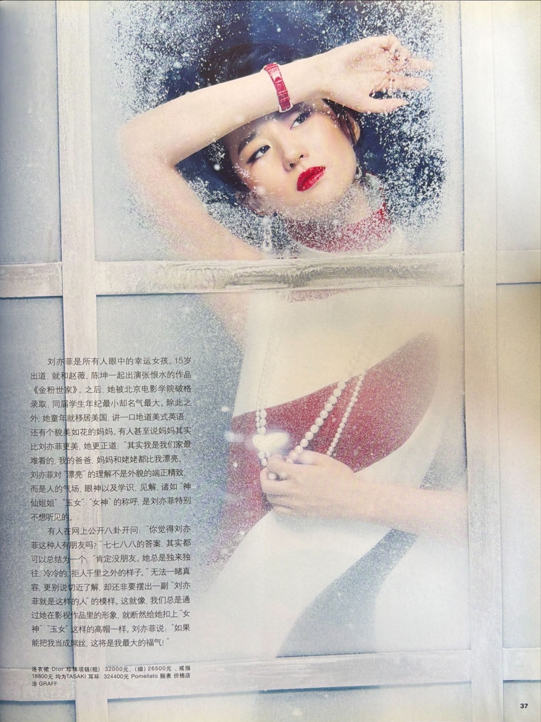 刘亦菲 回顾刘亦菲x瑞丽伊人风尚2015年12月号这一期的露出的合作品牌看的人眼花缭乱,也包含了Bvlgari,宝格丽女王的初期模样,挺逗的是十多年前的杂志我们天仙就被叫资深老到的演员了,不过也是,当时的天仙已经红了两个decade了,时至今日也是现役唯一一位三个时代都在Top位的时代巨星,拥有无数经典作品和角色的顶级演员 🧚♀️“是人都有柔软的一面无论男女,无论职业身份 必须处理脆弱的一面才能有强大的内心”刘亦菲宝格丽全球品牌代言人