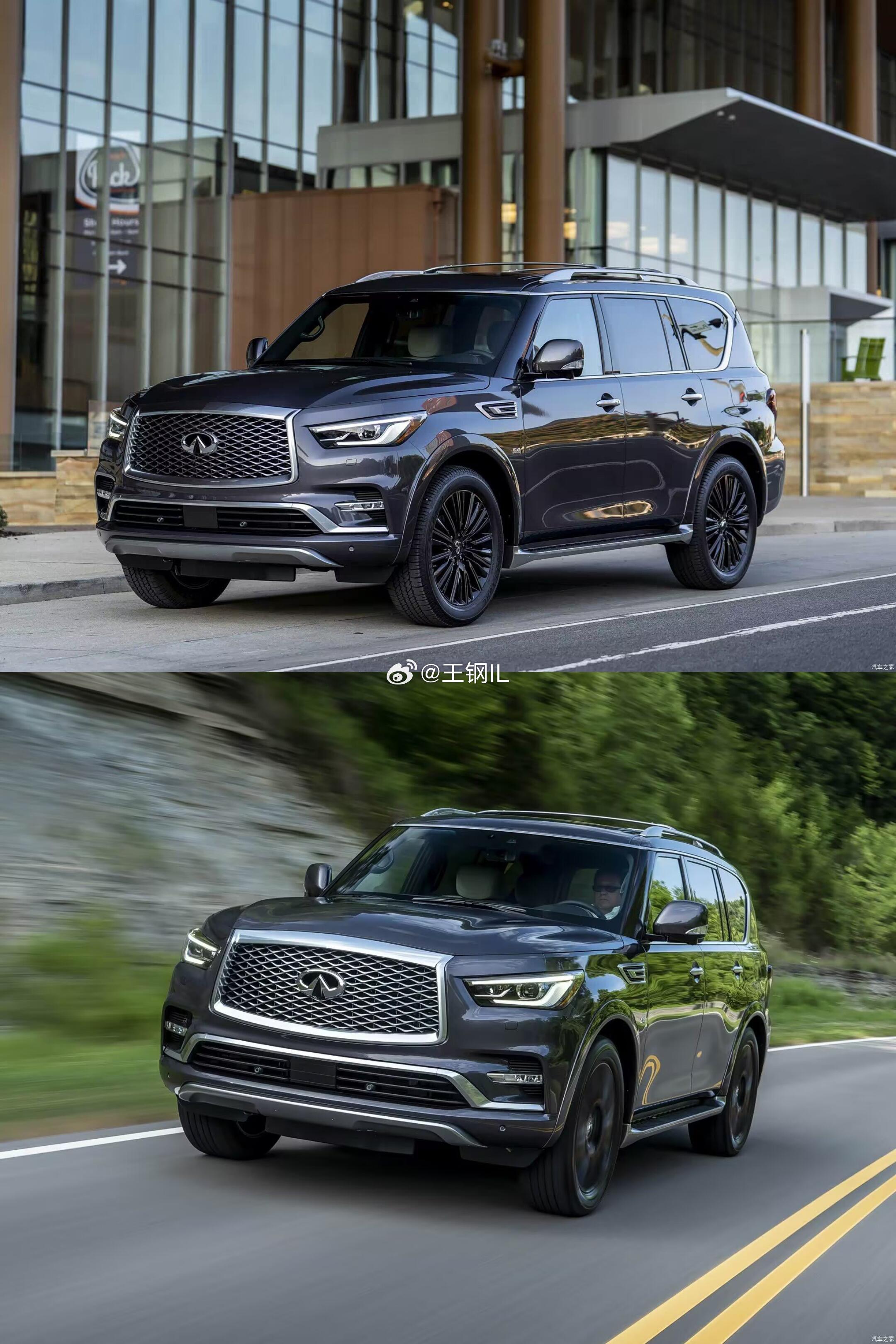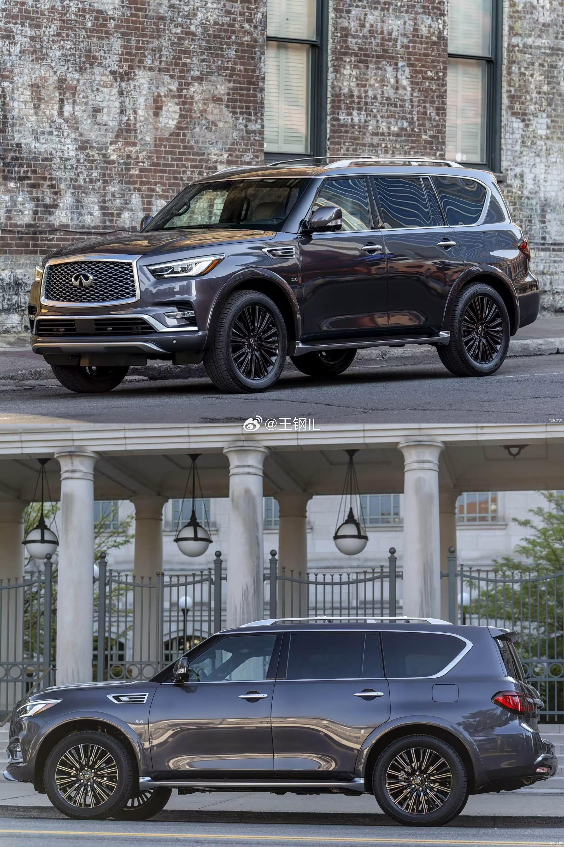 基于日产途乐同平台打造,是英菲尼迪的旗舰SUV,主打大空间、豪华感、硬派越野性能,面向高端商务与家庭多场景使用。车身尺寸超5.3米,轴距超3米,提供7座布局,空间表现同级领先。前脸:标志性的大尺寸网状进气格栅,搭配犀利的LED大灯与镀铬装饰,气场十足,方正硬朗的车身轮廓,搭配镀铬行李架、电动侧踏板,兼顾硬派与豪华感,贯穿式镀铬饰条连接尾灯,搭配双边共两出排气,视觉效果稳重大气,辨识度拉满。动力配置 核心参数 性能表现,5.6L V8自然吸气发动机+7AT变速箱 最大功率400马力,峰值560N·m 0-100km/h加速约6.5秒,全时四驱系统,搭载全时四驱系统+多地形模式,支持中央差速器锁止,拥有出色的非铺装路面通过能力,兼顾城市豪华与硬派越野属性。配备液压车身动态控制系统(HBMC),大幅提升高速稳定性与越野舒适性。英菲尼迪qx80