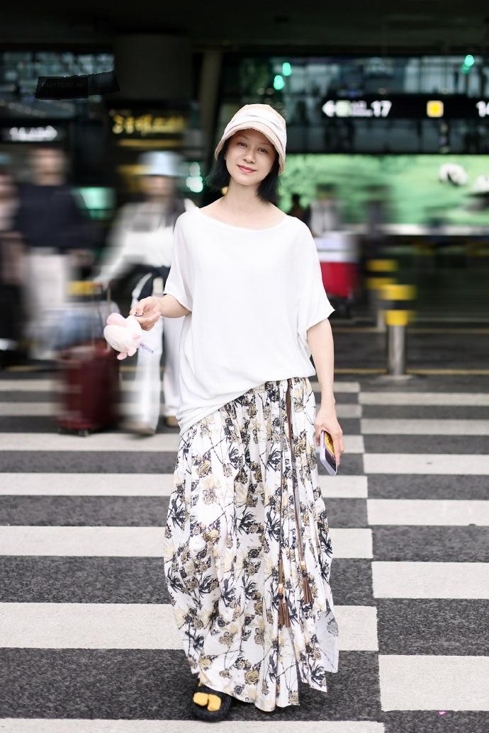 今天倪虹洁现身机场,她这次搭配的很有飘逸之美,看上去特别的时尚,也很有明星范儿。 倪虹洁上身穿白色的短袖衫,下身搭配超美的印花裙,凸显出了满满的洒脱感。 她的身段是极为苗条的,这次穿的很宽松,彰显出了潇洒之美,也很有大牌明星魅力。 倪虹洁脚踩黑色的凉鞋,头戴米色的渔夫帽,看起来格外的有时尚风情。 她还留着清新的短发,画着淡妆,整体效果相当的出众,不得不说倪虹洁确实是个不老女神啊。