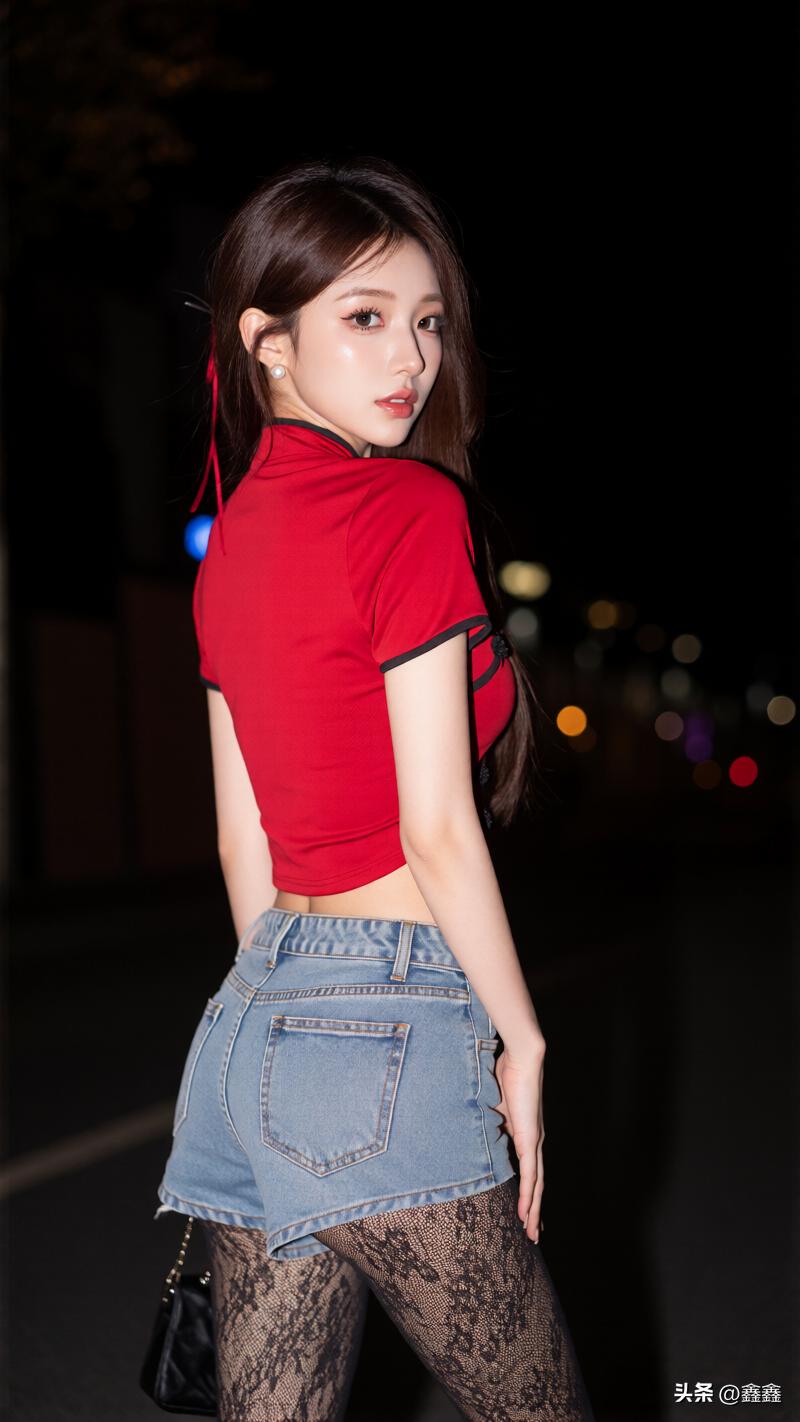 夜色总能赋予万物别样的魅力,就像那夜幕下的红衣少女,优雅与神秘并存。