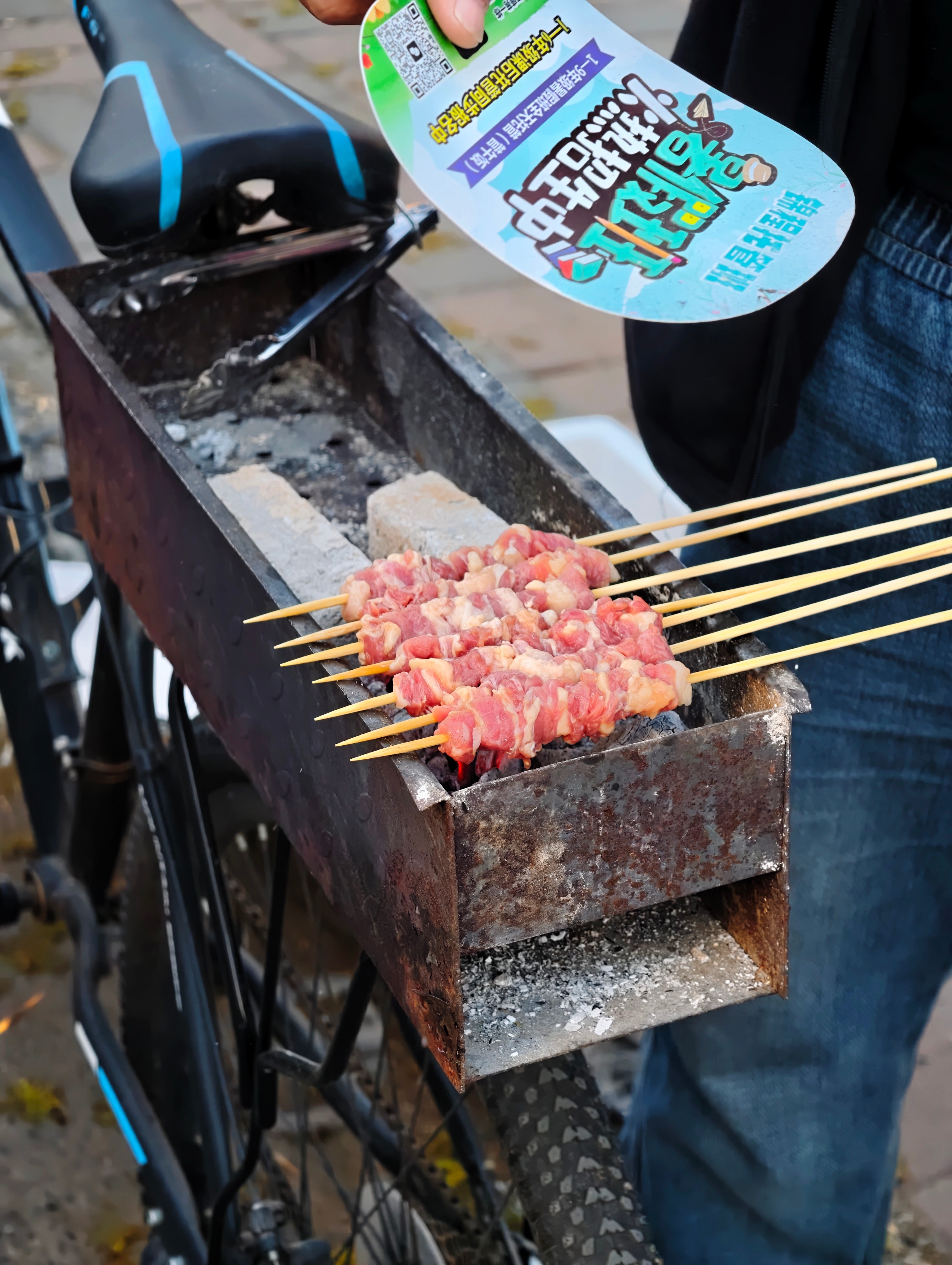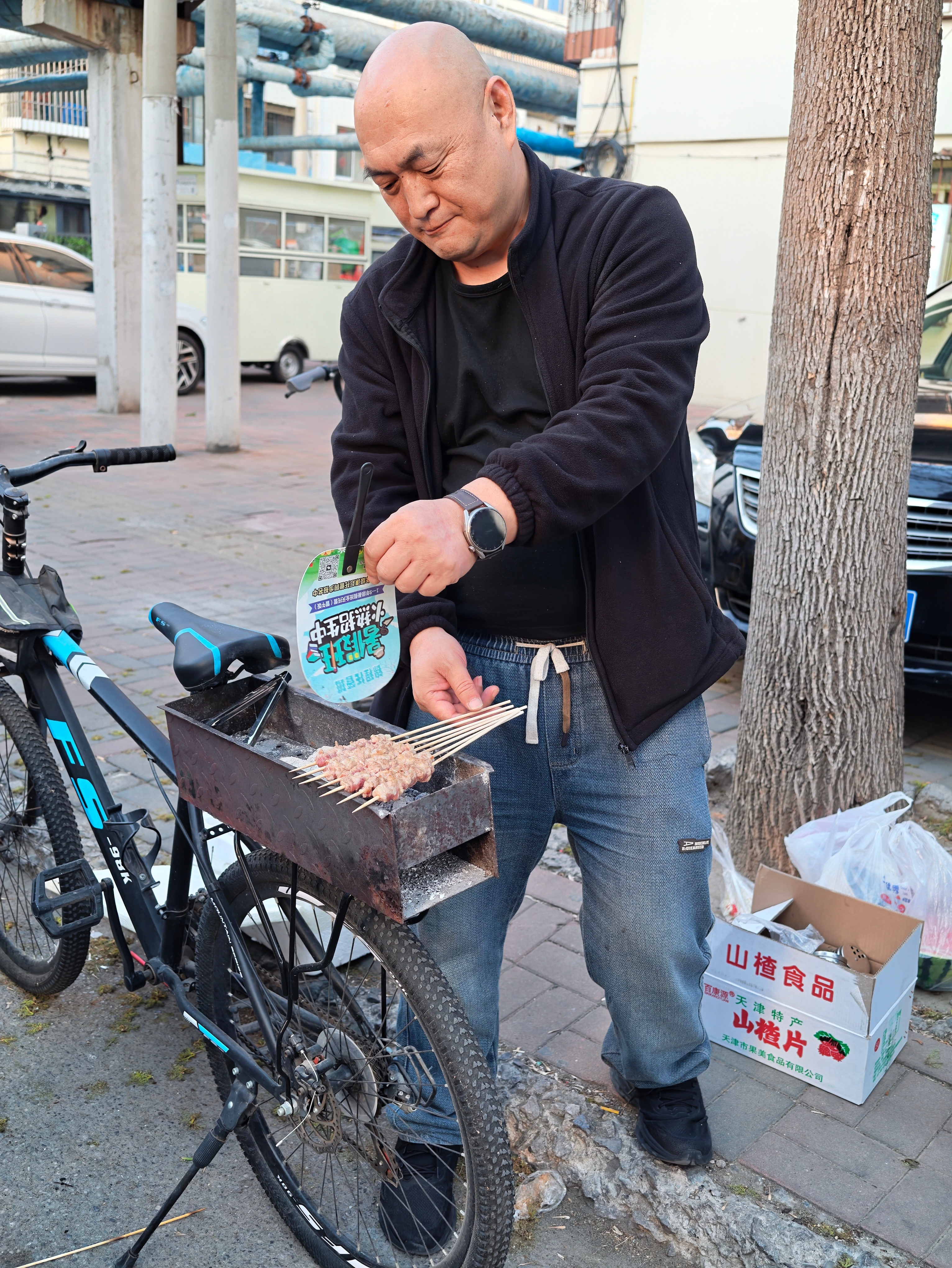 天津这个还是城市太复杂掰掰搞辆自行车 后衣架上支个炉子就卖上烧烤了 天津