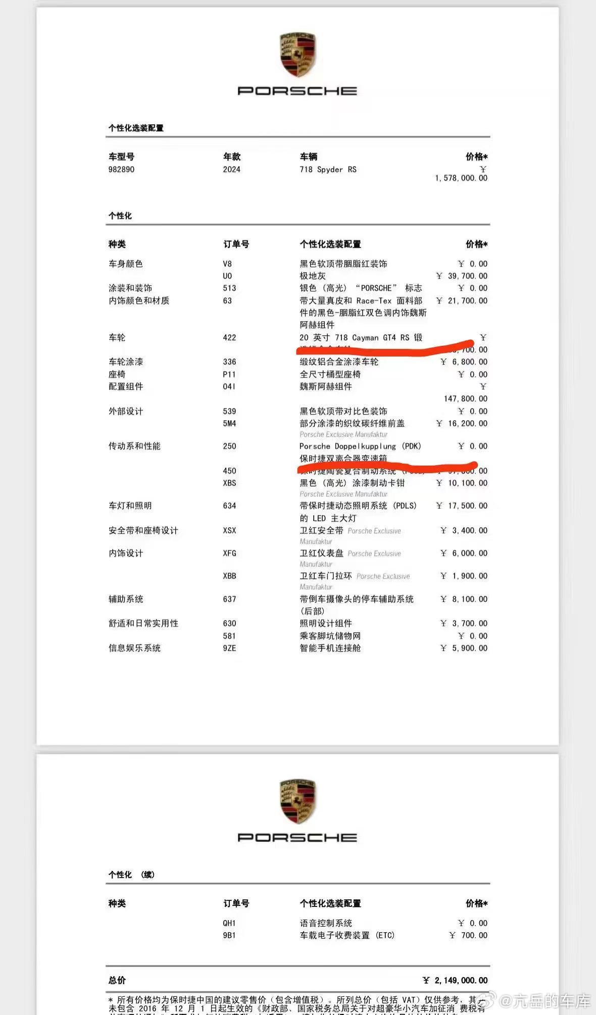 又给兄弟们弄了个好玩意:2024 718spyderRs 2300km 原漆 【京】但这车少俩配置 陶瓷刹车 、镁合金轮毂原车主定了两辆 一个黑的一个灰的 黑色自己收藏了把黑色的钢刹跟轮毂放这车上了但都是全新件 所以性价比就稍微高一些喜欢您来