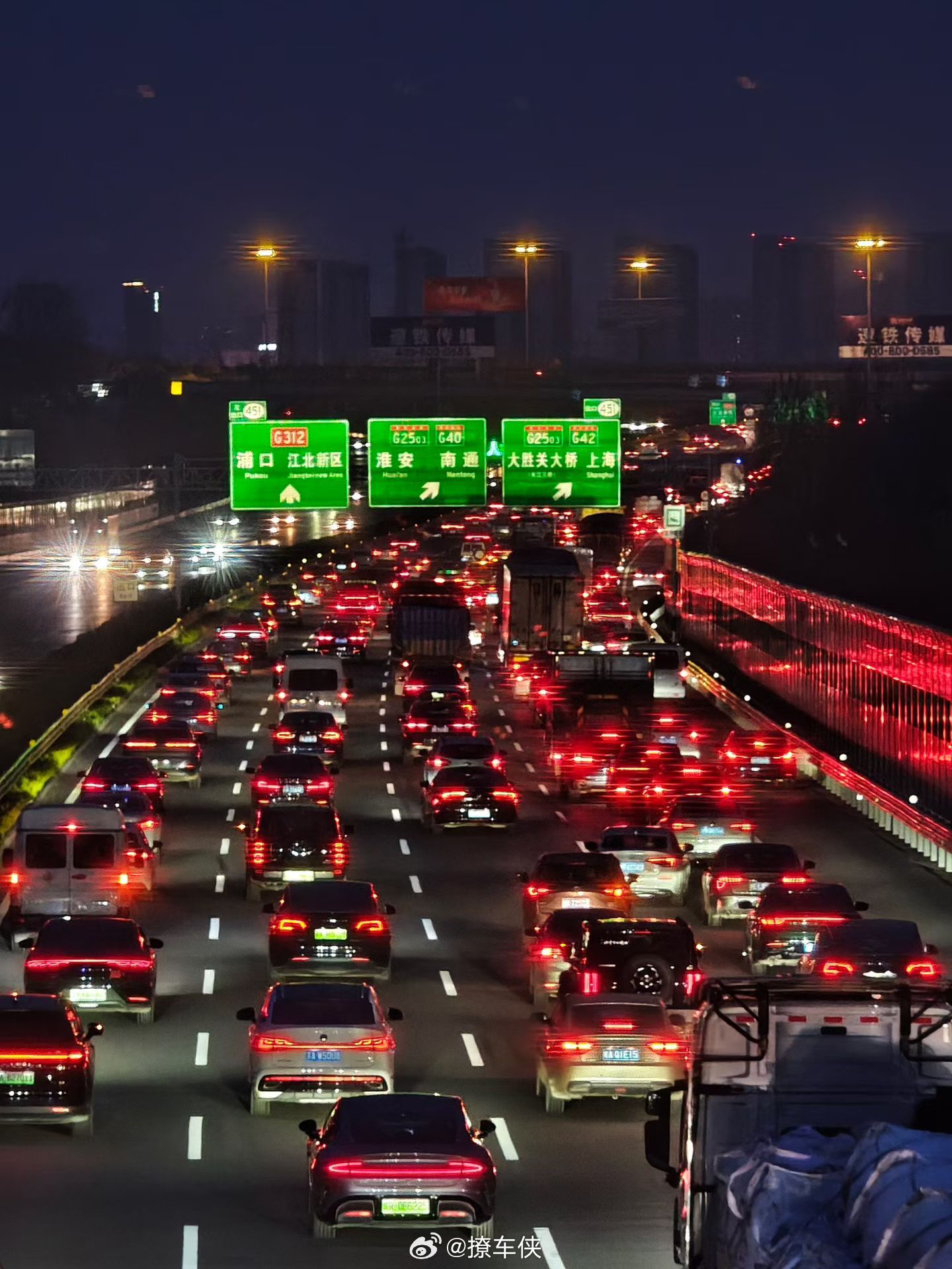 有人看风景,有人在桥上看尾灯,红得晃眼,堵得心慌全民拍车