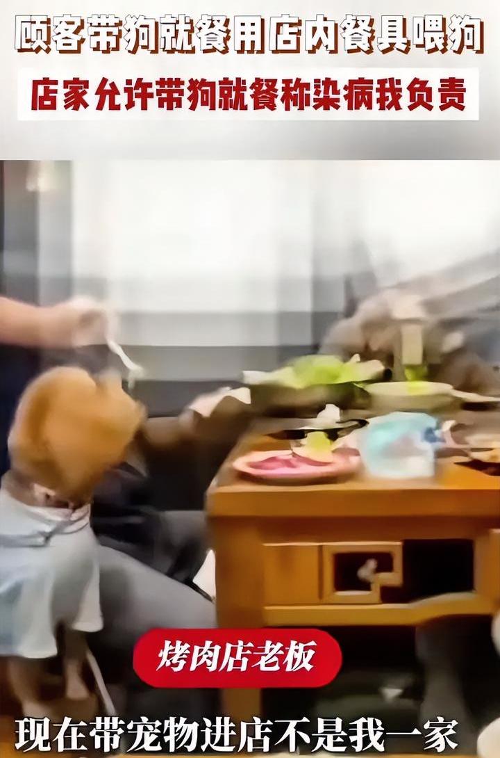 烤肉店老板力挺顾客带狗用餐,就喜欢这么硬气的老板,希望你能坚持住啊。 今日马鞍山某烤肉店两顾客带两只狗进店,让狗上桌,用餐具喂狗吃东西,引起他人不满。 结果烤肉店老板非但不制止,反而态度强硬:“狗是坐在凳子上的,餐具是一次性的,他们用自己的筷子喂狗,让狗进店又不止我一家,染病我负责”。 别的饭店老板遇到这事要么道歉、要么销毁餐具停业消毒,反观这家店老板却坚定的站在了宠物一方,态度强硬的让网友都一时间语塞。 还是那句话,狗进餐厅不仅不卫生,更是对其他顾客的不负责,希望这家店老板记住自己的话,千万不要服软,既然店是自己开的,想让谁吃自然是自己说了算。