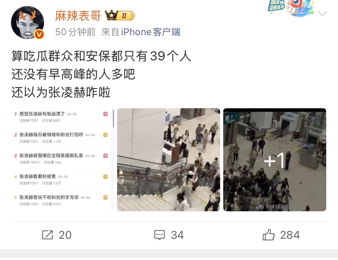 哎我去!粉丝太可怕了,私生太可怕了,节假日算上路人和安保才39个人,就把张凌赫吓