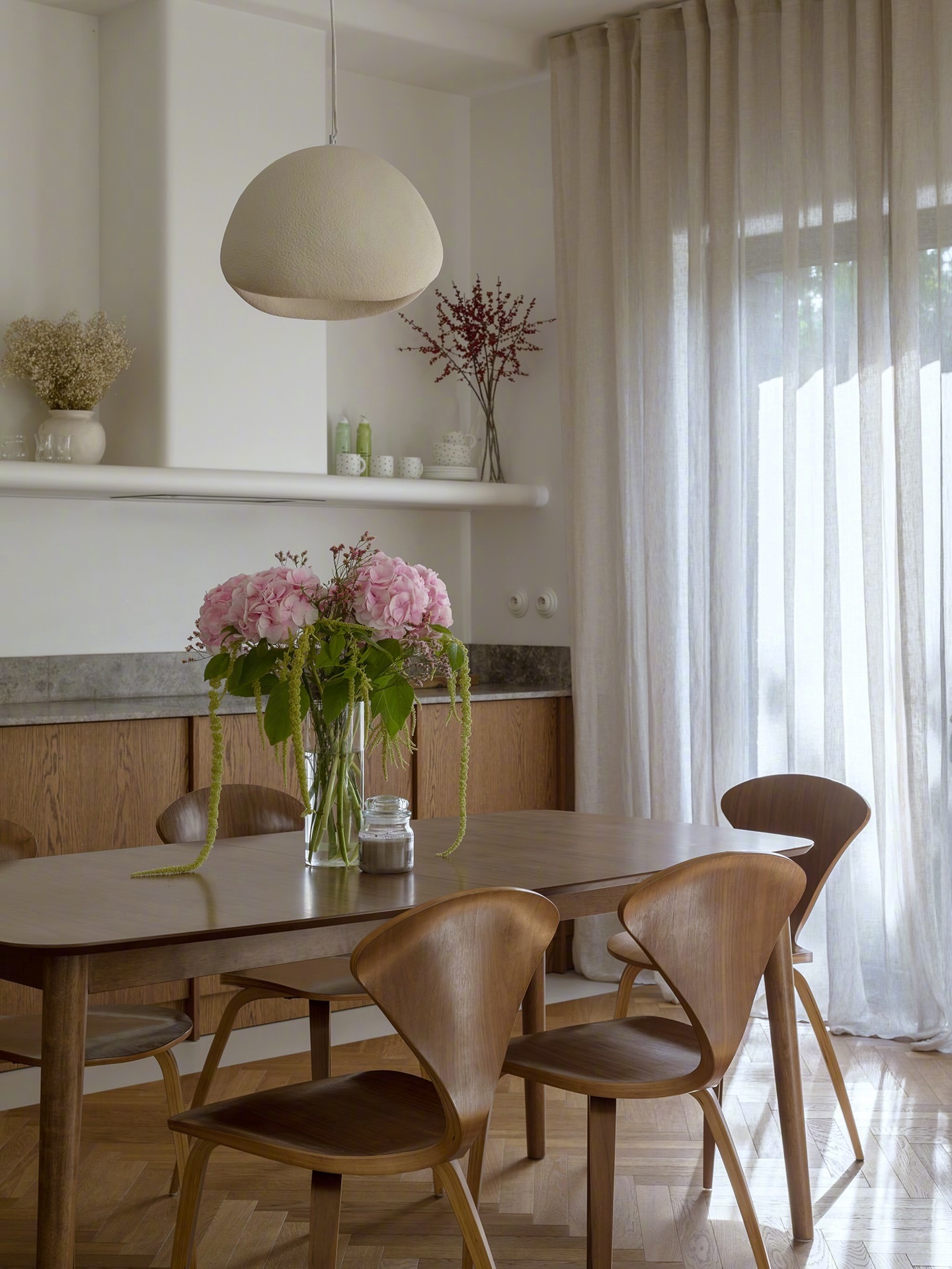 “Rounded House圆角之家”——-时下比较流行的一种家装。通过柔和的形态、光线与天然材料,构建一个连贯而宁静的整体空间。每一个元素都服从于“和谐”的理念,而空间也会随着一天中不同时段与使用方式而变化,灵活回应居住者的需求。🌸🍃