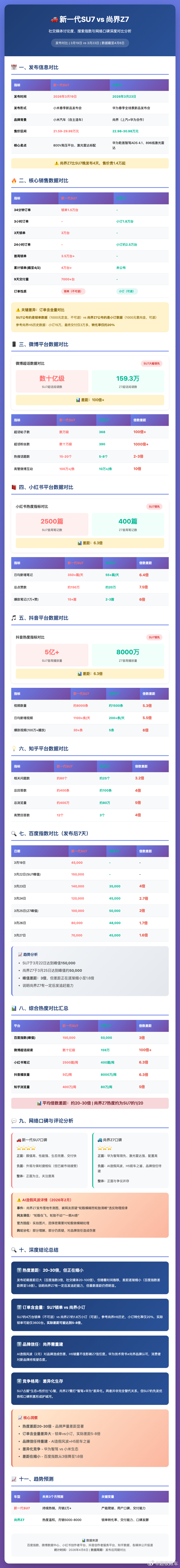 【谁更火?小米SU7完胜】小米SU7一出来就是顶流,微博热度是尚界Z7的100倍,抖音小红书也碾压。大家讨论得热火朝天,流量实打实的大。尚界Z7虽然也有华为光环,但在热度上完全被压了一头。