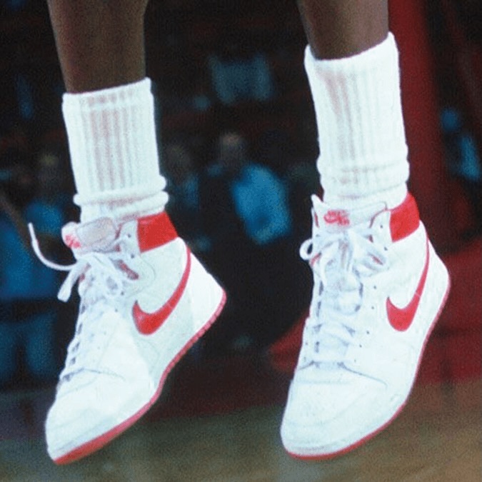 Michael Jordan 早期喜欢穿的一款袜子, 一直以为是叠起来穿或者里面套了多层袜子 .前几天看见有人晒这双袜子,原来是一款为冬季运动设计的厚袜子, 也许那时候耐克篮球袜不够厚而不符合老流氓的需要? 他选择了这双冬季袜 一穿就穿了好多赛季 ,不知道这双袜子当年是不是卖爆