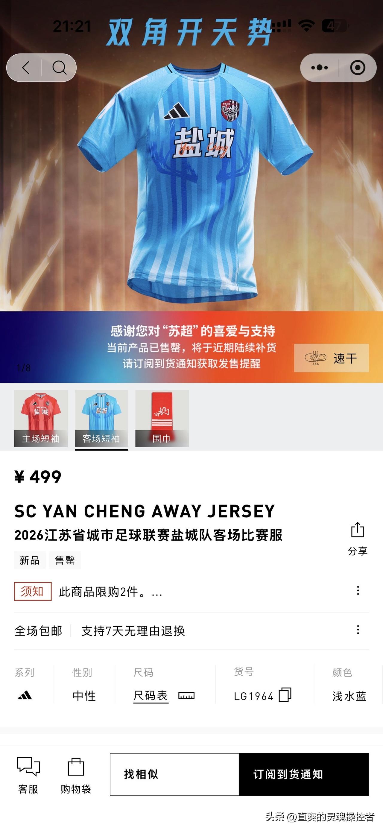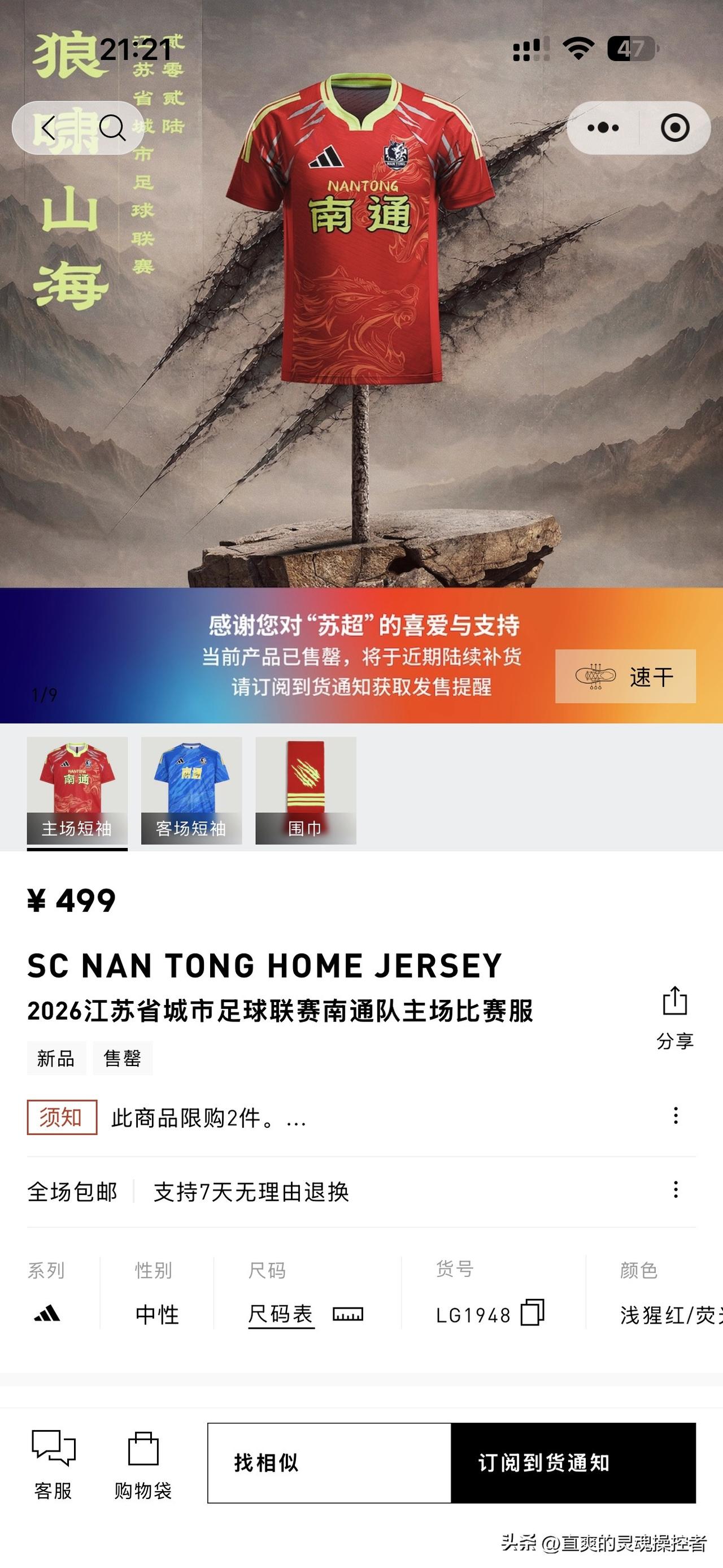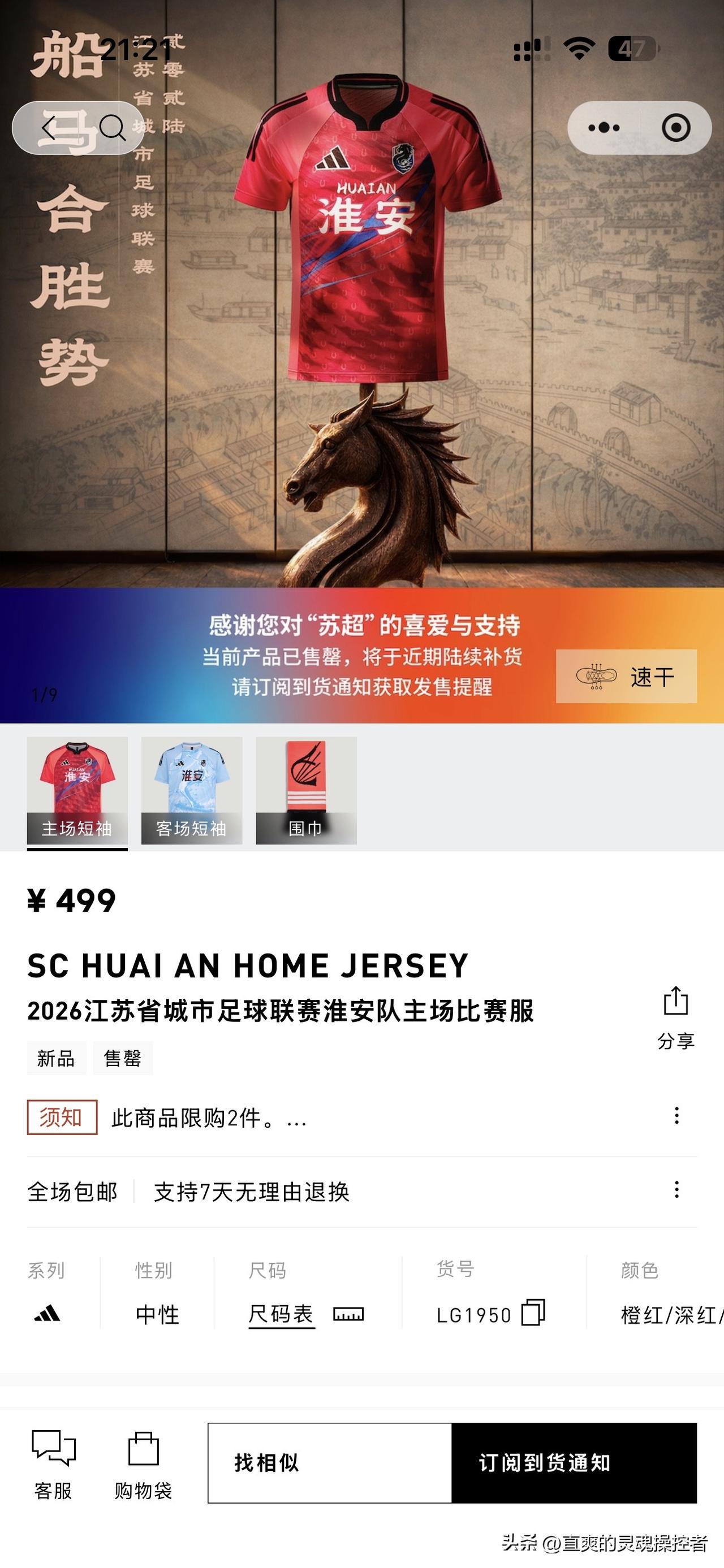卖疯了!苏超阿迪达斯“13太保”球衣全线售罄。