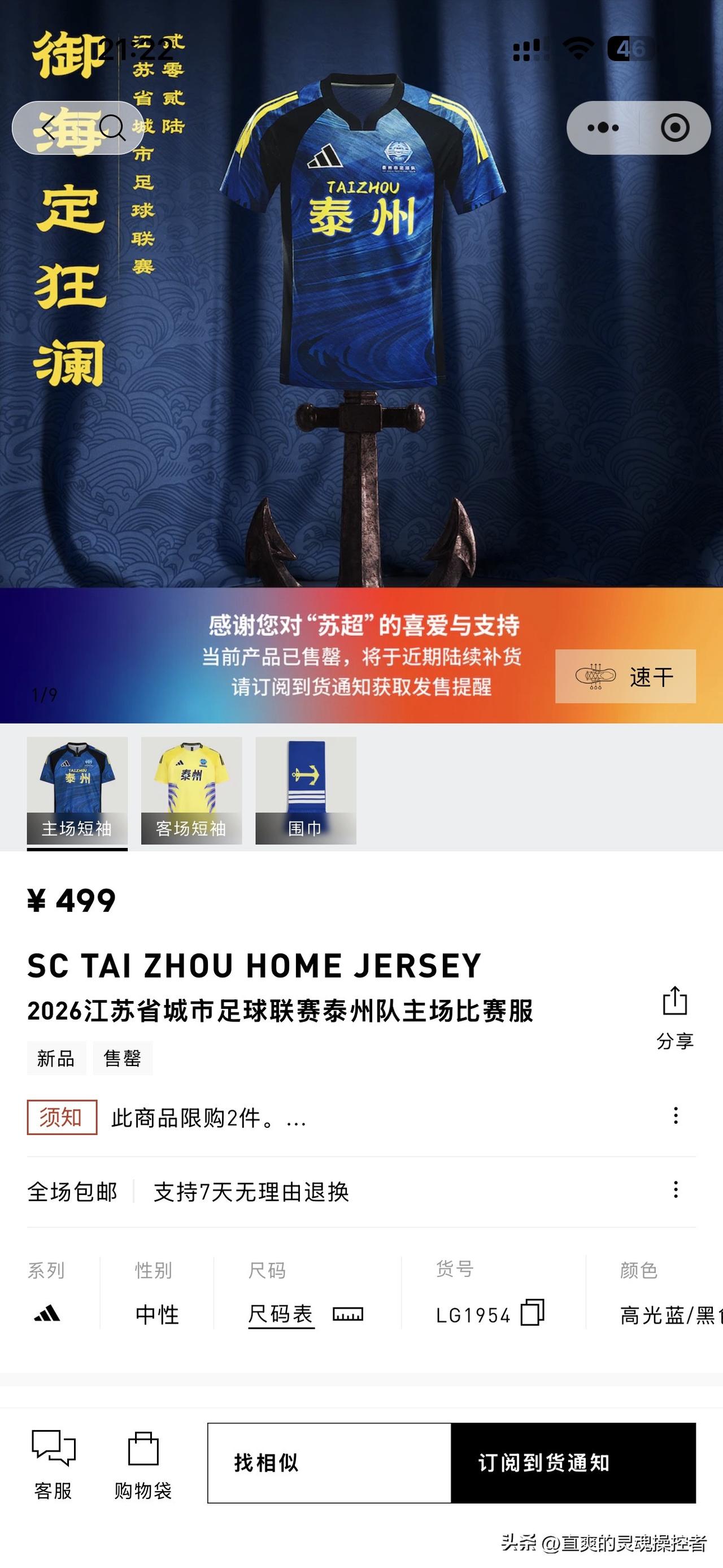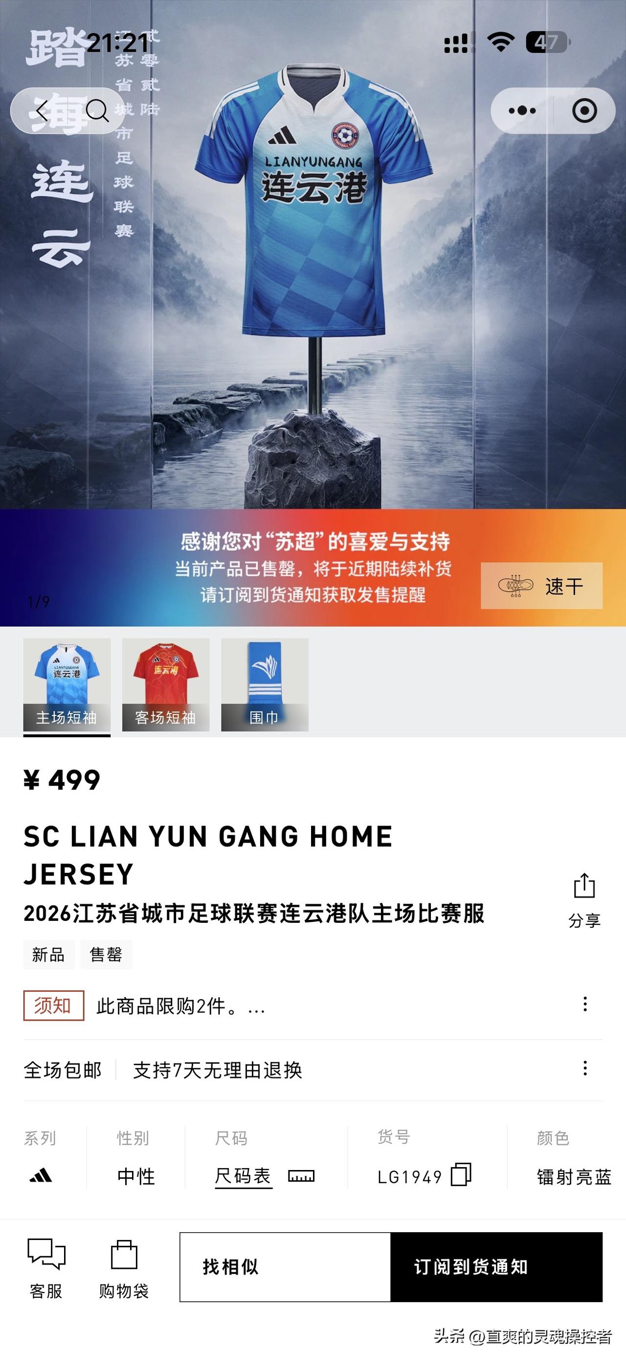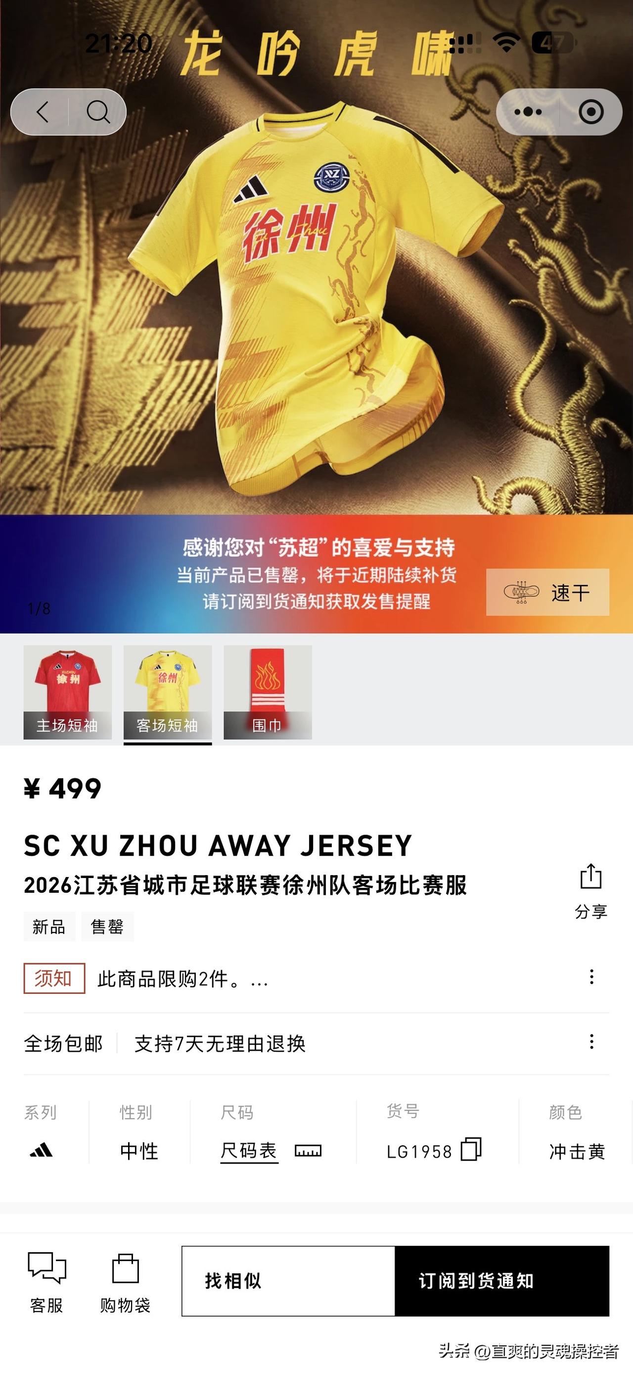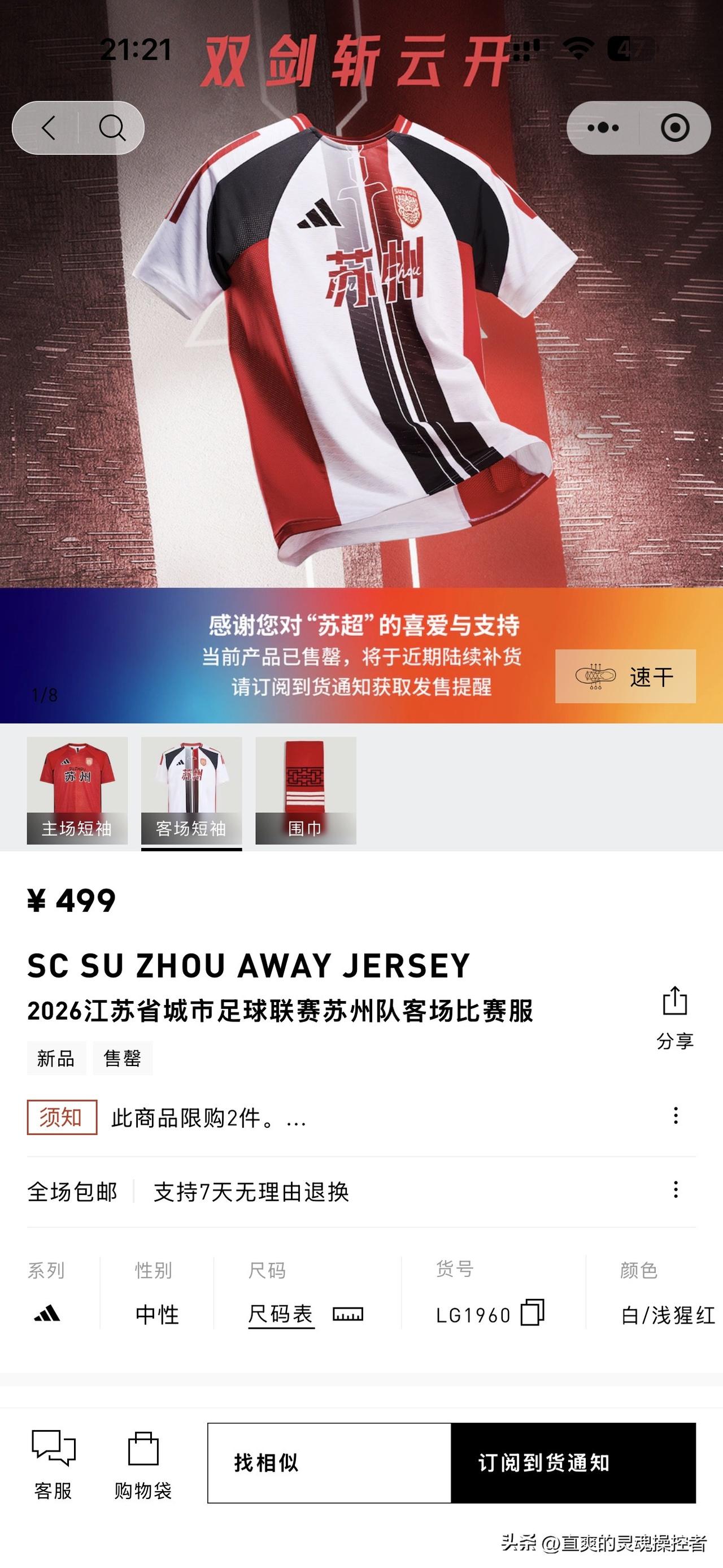 卖疯了!苏超阿迪达斯“13太保”球衣全线售罄。