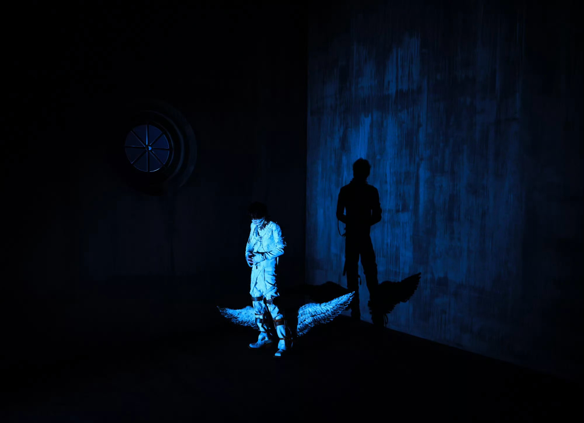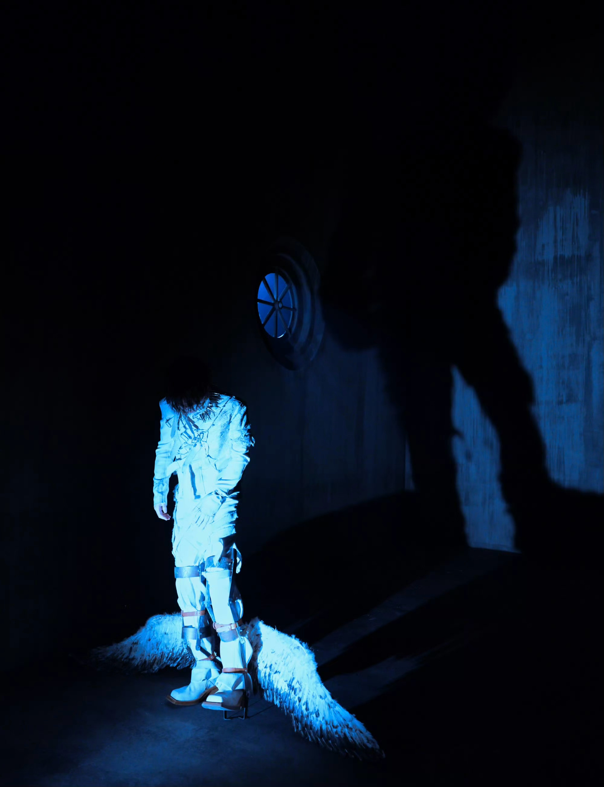严浩翔 EP《Scary Movie Ⅱ:Same Face》概念视觉第五组大片,继续暗黑视觉美学,绷带 铆钉 羽翼… 强化“牢笼困飞鸟”的隐喻,冷调光影营造哥特式暗黑氛围。🌌⛓️🪽 严浩翔scarymovie2