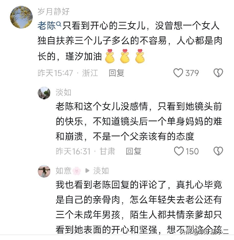 网友也不敢相信他怎么能说出那么令人伤心的话,当初是他抛弃了瑾汐,现在女儿过得好,他不应该开心吗?
