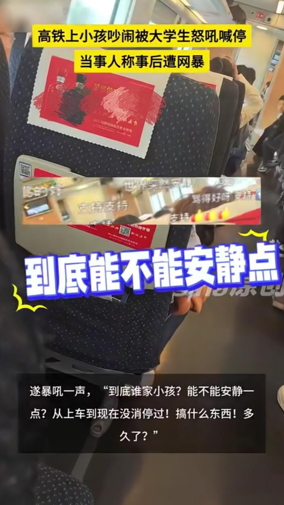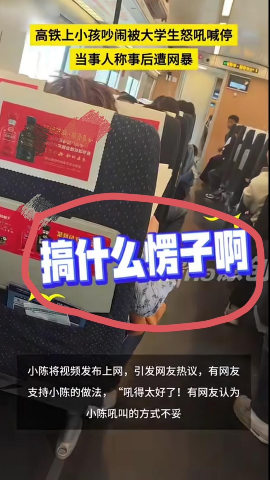 “非要闹上头条新闻不可!”4月5日,这个名为“小陈”的大学生从杭州乘坐火车前往阜阳西,刚开始整个车厢还算比较安静,可没过一会一个小孩开始“折腾”了。 也不知道家长有没有管可孩子老是大喊大叫,搞得其他乘客们几乎都都不得安生。 就在大家伙无奈加无语之际,一位火车工作人员走了过来,由于孩子吵来吵去已经影响到其他乘客,这位工作人员立即提醒了孩子和那个家长。 可好景不长,这个孩子继续我行我素,跳来跳去喊来喊去始终没完没了。要是再这样下去,估计会有乘客受不了。 果不其然,一个令人猝不及防的吼叫声出现了,大家伙被突如其来的声音吓住了,回头一看原来是一个年纪轻轻的小伙子,也就是被称为“小陈”的大学生。 只听小陈大声吼道:“到底谁家小孩?到底有没有人管?能不能安静一点?搞什么楞子?多久了?”也许是声音太大,那个小孩立刻停止了折腾,瞬间变得安静起来。 等回头,小陈将视频发到网上,想不到网友们热议纷纷,后来闹上了头条新闻,好多人支持小陈这么做,也有好多人反对小陈这么做。 支持小陈一方的网友,其理由是这样:既然工作人员提醒了,说明孩子真的闹腾了。另外,小陈一定是被逼无奈才这么做。 但凡家长好好管管,也就没有这事。因此,这事不怪孩子,不怪小陈,要怪就怪那个家长。” 反对小陈的一方,其理由是这样:毕竟孩子不懂事,可你是大人了,怎么跟孩子计较,更何况你是大学生,这学都上到哪里了? 另外,你就算提醒那也不能这种态度,哪有用吼叫来提醒孩子的呢?还有就是孩子,估计年龄很小,不怎么懂事,当大人的忍一忍咋了,难道你以后不要孩子? 那么,对于小陈的做法,你是怎么看的?不妨唠一唠。(素材来源于头条新闻,若侵权请联系。)
