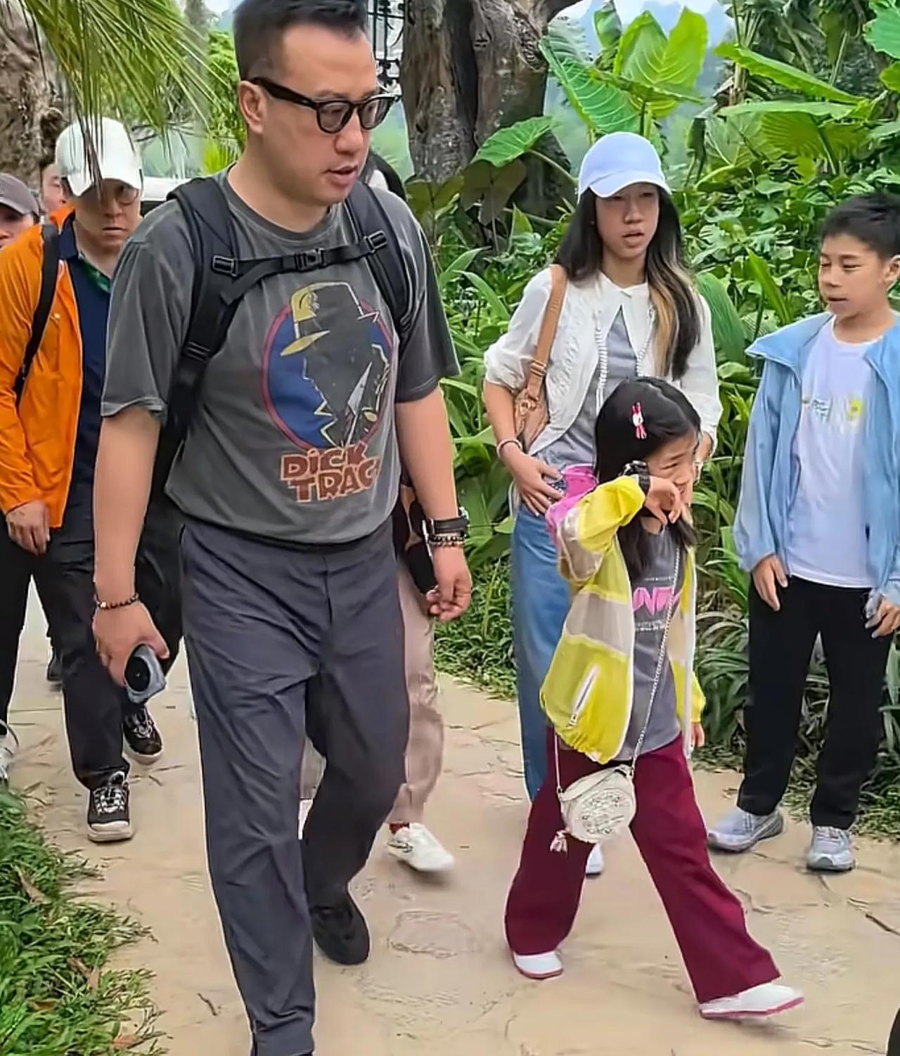 清明假期叠加复活节假期,霍启刚特意抽出时间,带着 12 岁的长子霍中曦、7 岁的大女儿霍中妍和 6 岁的小女儿霍中怡,来到广西崇左的伏那秘境。 这里是北热带喀斯特森林,藏在恩城国家级自然保护区内,有 3.5 公里的平缓徒步路线,石板路与林间步道交错,还有绿水潭、丁达尔森林、半空雨林等景致,全程遮阴率高,本是适合亲子慢游的地方,可带三个精力充沛的孩子同行,对霍启刚来说仍是不小的挑战微博。 当天他穿着一件橙红色外套,背着沉甸甸的双肩包,包里装着孩子们的水壶、零食、湿巾和应急物品,全程走在队伍最后,目光紧紧锁在三个孩子身上。 长子霍中曦已经长成小大人,个子蹿得很高,主动承担起照顾妹妹的责任,见小女儿霍中怡走得有些累,便弯腰把她抱在怀里前行,没走多远小丫头又挣脱下来,和哥哥在小径上追逐打闹,笑声在林间回荡。 两个女儿背着同款小熊背包,大女儿霍中妍戴着眼镜,安静地走在一旁,偶尔停下来看看路边的蕨类植物,小女儿则最是活泼,一会儿跑向前面探路,一会儿又折返回来拉着霍启刚的手,要他看林间的光影。 伏那秘境的徒步路线虽平缓,但全程走下来也要一个半小时,加上要时刻留意三个孩子的安全,帮他们擦汗、递水、整理衣物,还要回应孩子们不停歇的提问,霍启刚的疲惫全写在状态里携程。 他的肩膀微微垮着,脚步比刚入园时慢了许多,偶尔停下时会悄悄揉一揉后腰,脸上没了平日商务场合的利落,只剩下奶爸的疲惫与温和。 即便如此,他也没让孩子脱离自己的视线范围,孩子们跑远时会轻声叮嘱,靠近时会耐心听他们分享发现,没有丝毫不耐烦,只是那份藏不住的倦意,和每个独自带娃出门的爸爸别无二致。 这次出行格外低调,没有保镖随行,没有保姆帮忙打理琐事,只请了一位当地向导引路,一家人混在普通游客里,若不是有人认出,根本看不出是豪门家庭。 面对路人的拍摄,霍启刚也没有刻意遮挡孩子的脸庞,坦然让孩子们融入普通的出游氛围,就像寻常父亲一样,带着孩子感受自然、享受假期。 他没有给孩子特殊的优待,让三个孩子自己走路、自己背包,累了就稍作休息,全程让孩子体验最本真的亲子游,没有奢华安排,却满是踏实的陪伴。 其实不管是霍启刚这样的家境,还是普通家庭的爸爸,带娃出门的状态总能神奇重合。爸爸们带娃时,大多是默默扛下所有琐事,背着最重的包,走在最外侧护着孩子,体力与精力双重消耗,往往孩子还没玩累,自己先累得不想说话。 可即便疲惫,也会强撑着陪孩子探索、陪孩子笑闹,把疲惫藏在身后,把陪伴摆在孩子面前。这种状态无关财富、无关身份,只是父亲面对孩子时,最本能的付出与坚守。 如今越来越多爸爸主动参与育儿,像霍启刚这样,放下工作与身份,全身心投入陪伴孩子的爸爸不在少数。 他们或许带娃时不够细致,或许会手忙脚乱,但那份疲惫背后的用心,和普通爸爸的爱没有差别。 带娃从来不是妈妈一个人的事,爸爸的参与,是孩子成长里不可或缺的养分,而那些带娃时的疲惫瞬间,也成了亲子间最真实、最温暖的记忆。 你身边有没有这样带娃时疲惫却温柔的爸爸?你觉得爸爸带娃和妈妈带娃最大的区别是什么?
