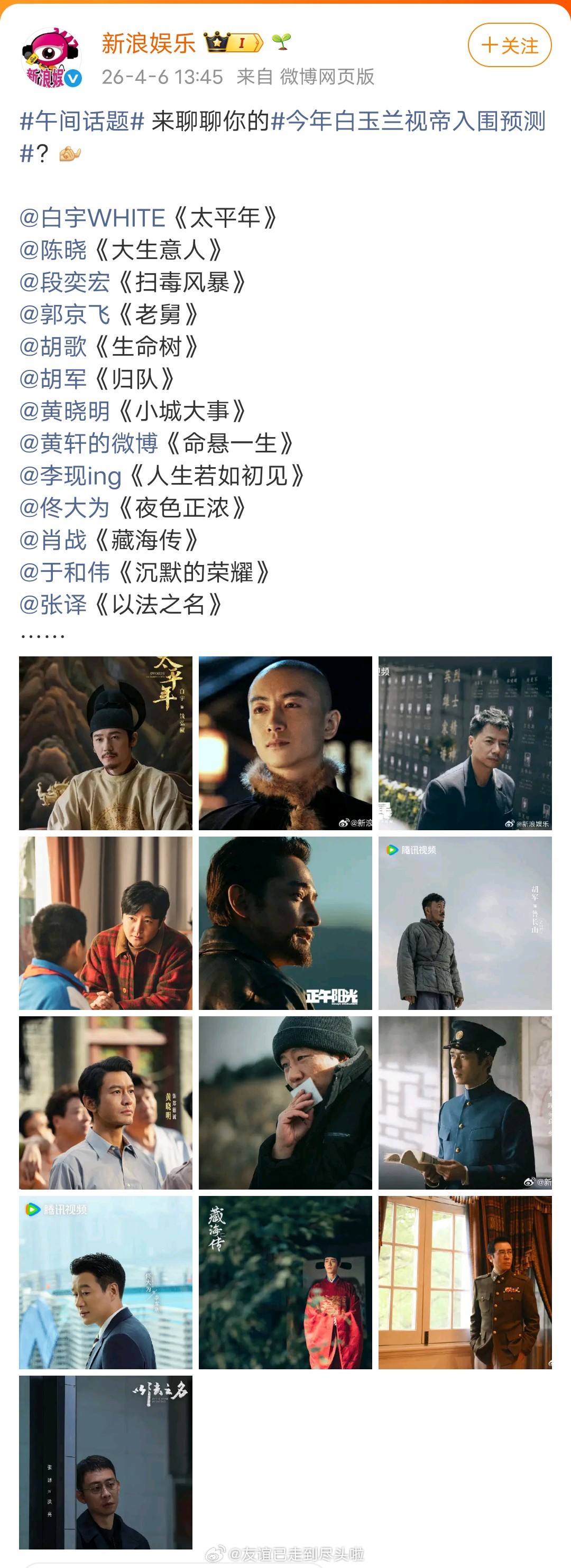 🍉🍉今年白玉兰表演奖不仅要横向比,更要纵向比,相较本人以往拿奖角色没有突破的