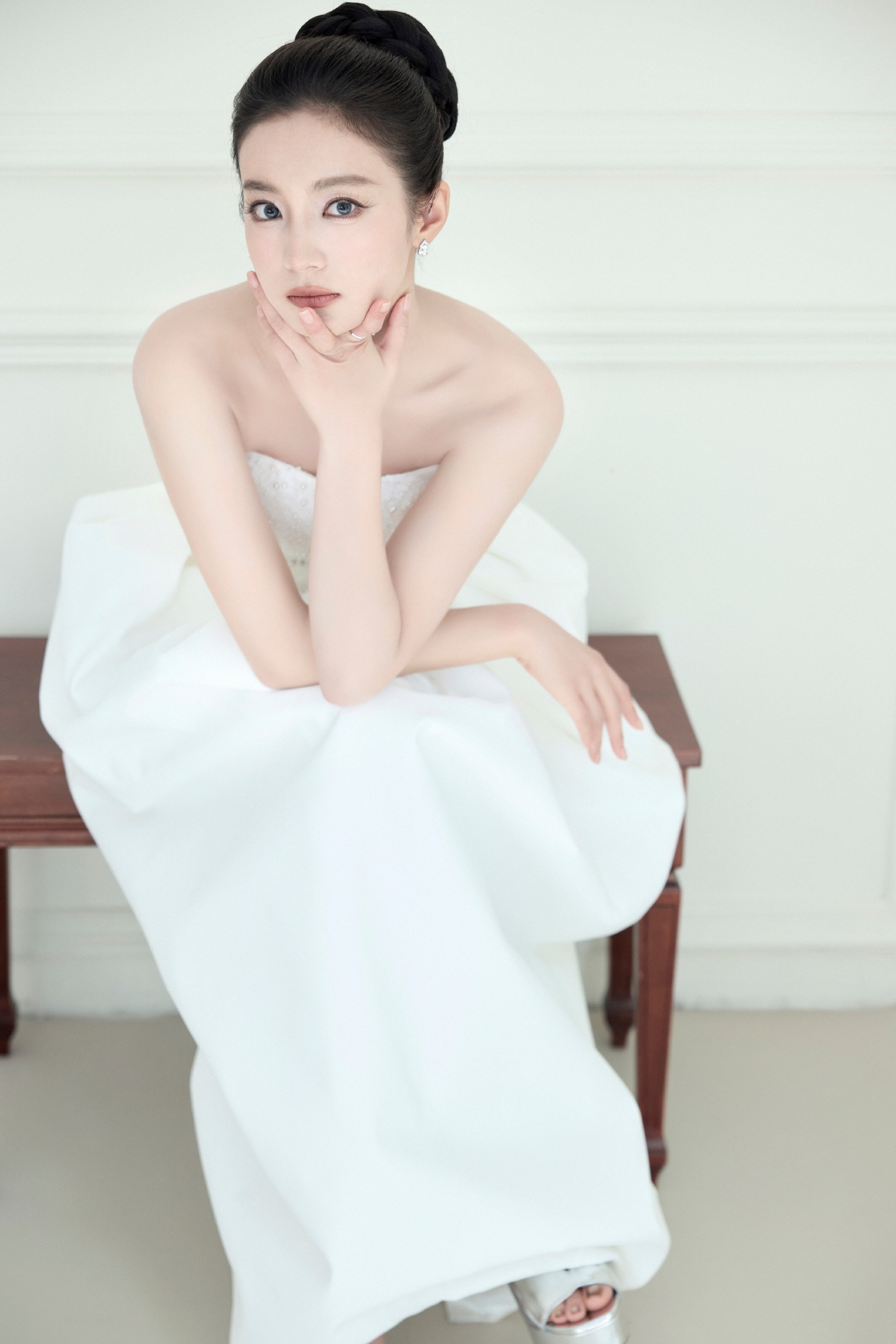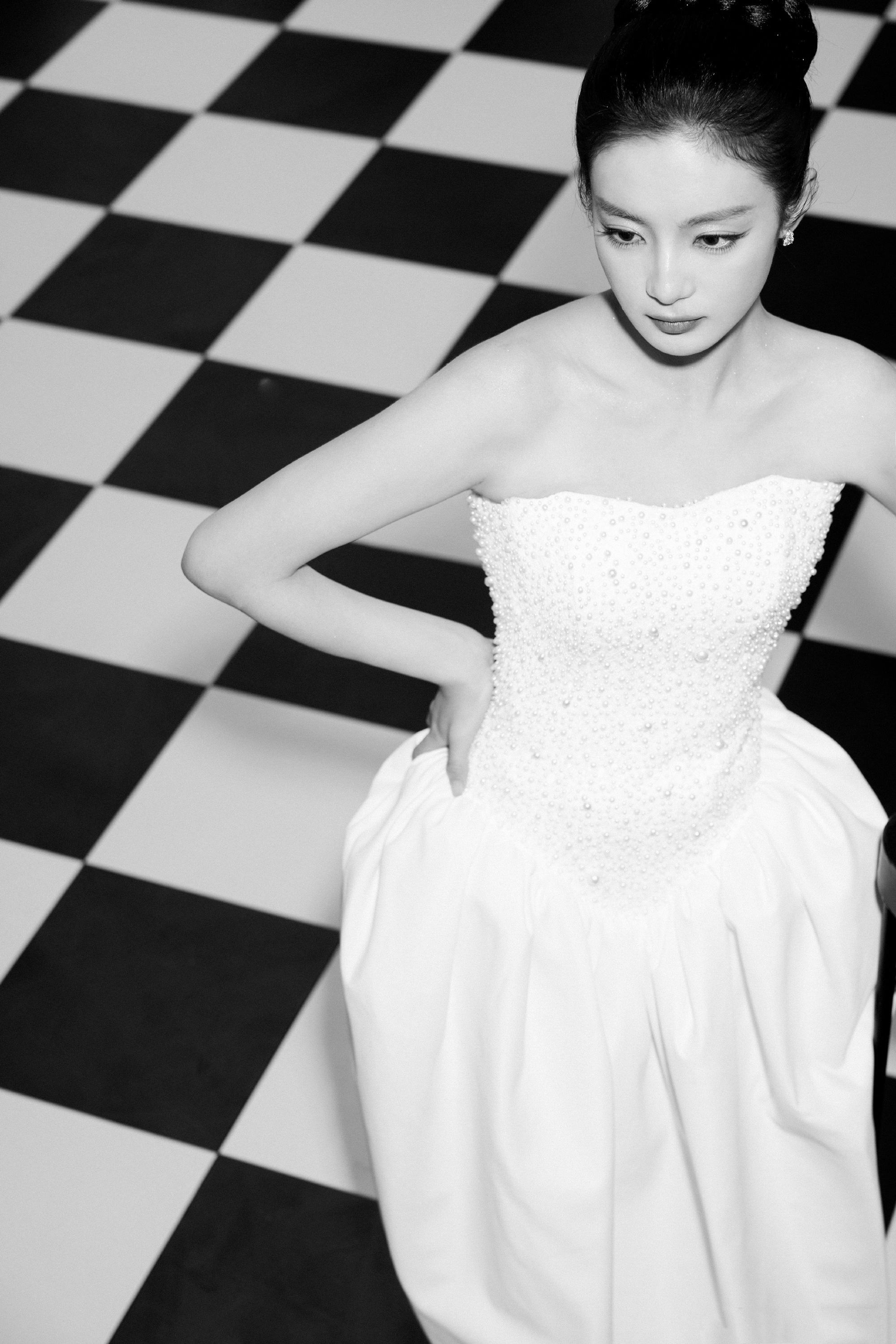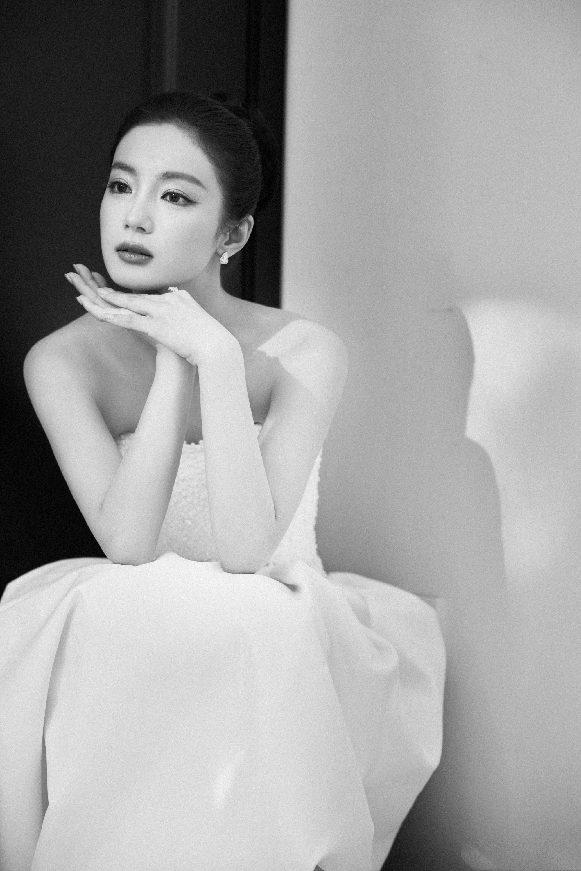 张雅钦国剧盛典,优雅抹胸白裙穿搭。张雅钦