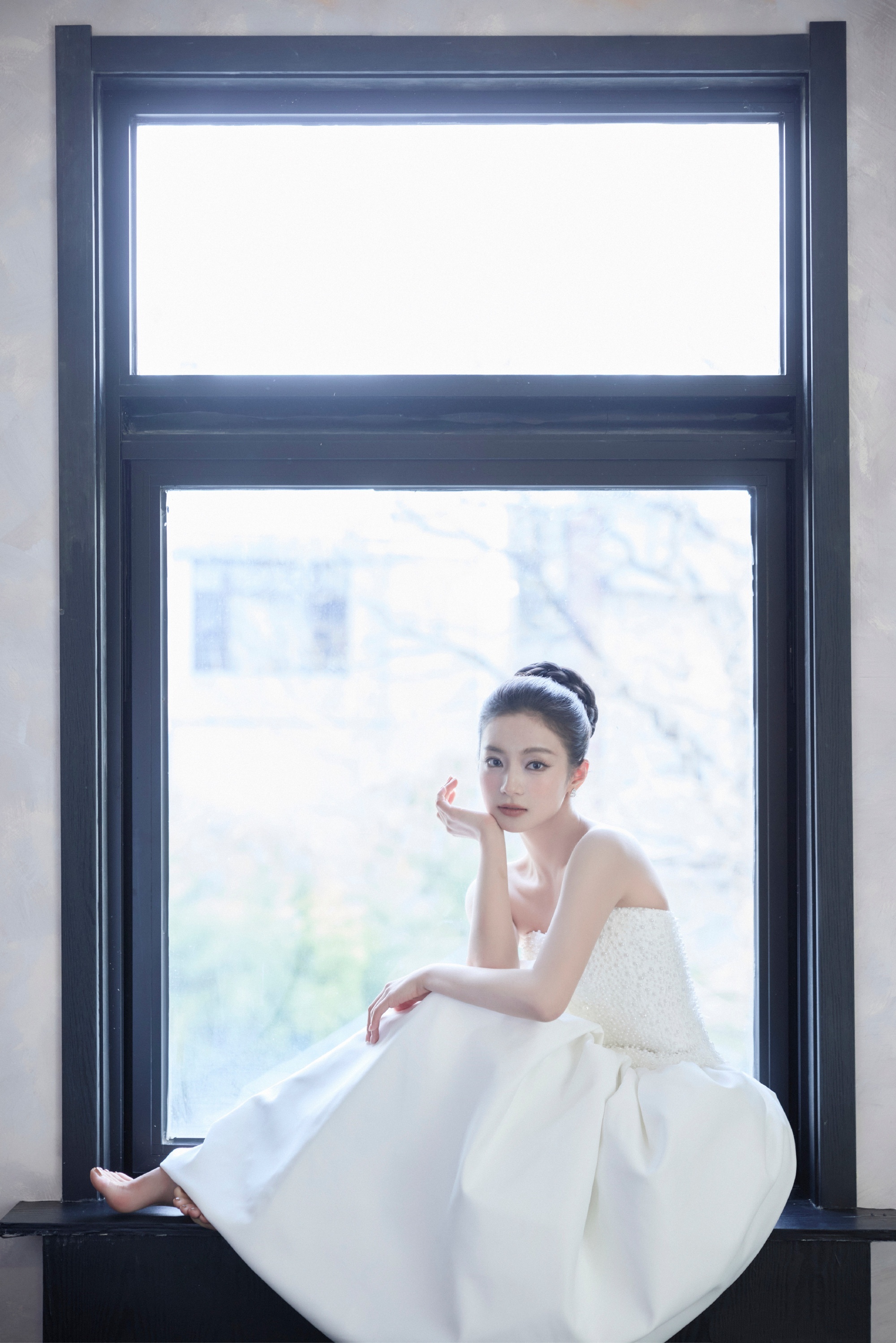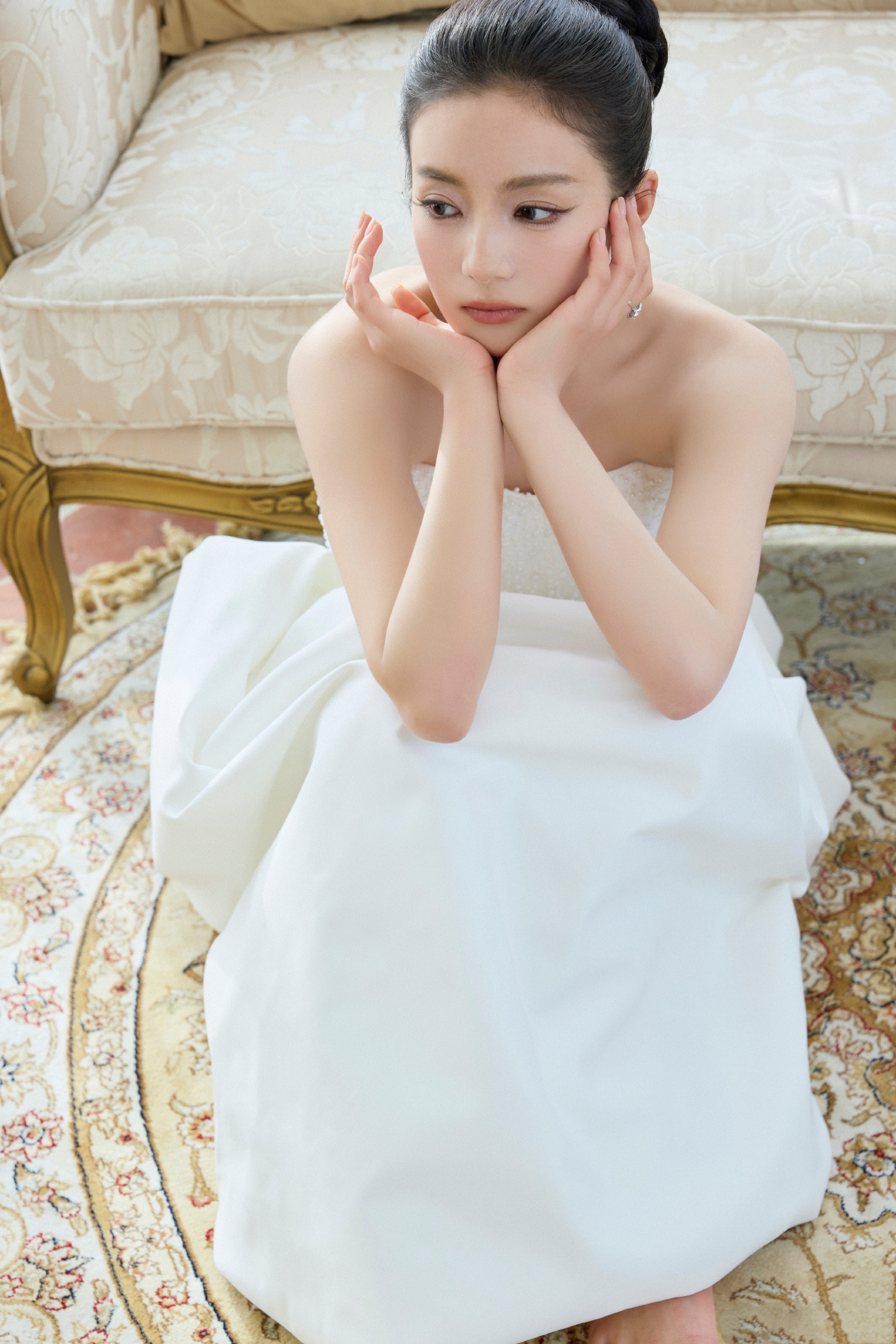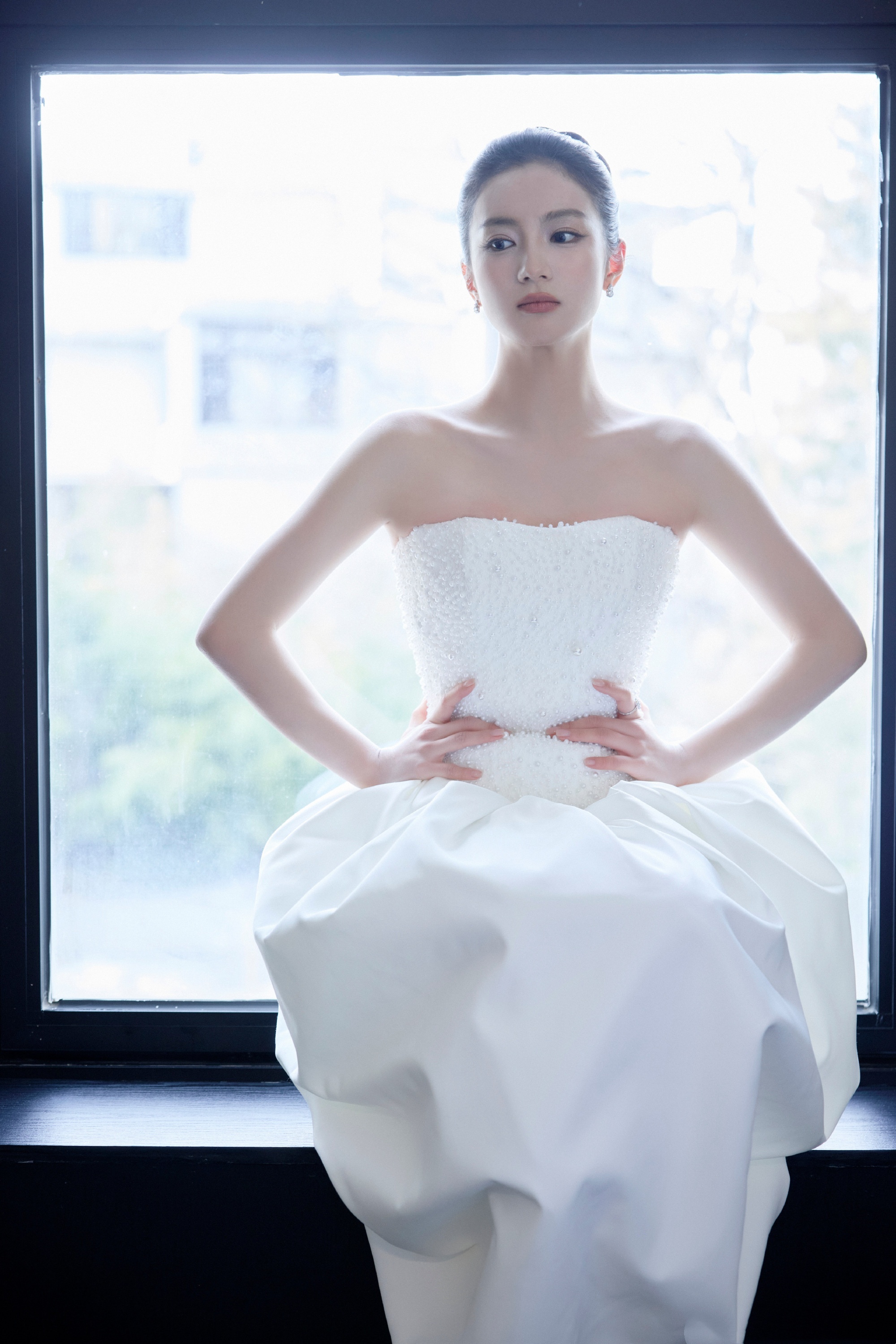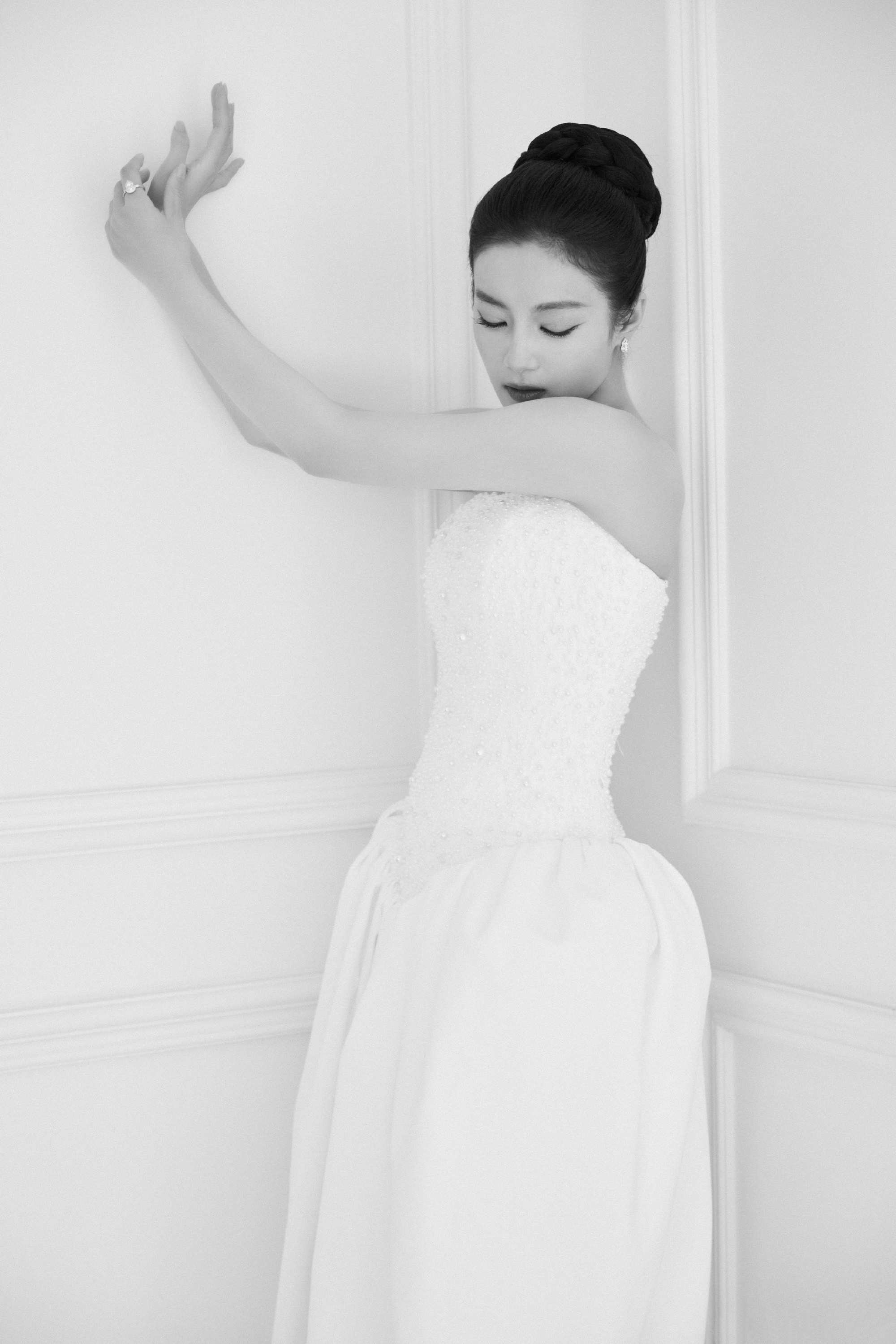张雅钦国剧盛典,优雅抹胸白裙穿搭。张雅钦