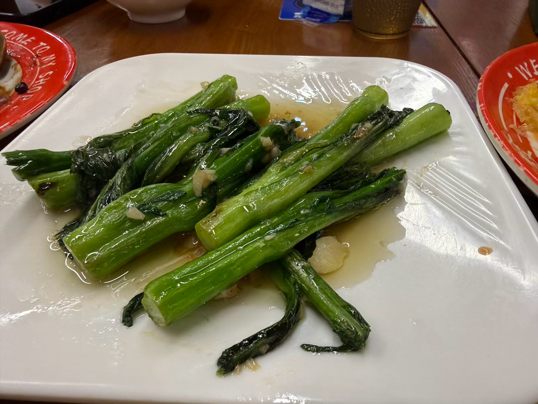 蒜蓉菜心不功不过,口感是软甜的,喜欢的就喜欢(比如我老婆),喜欢生炒的生脆口,就可以跳过了;