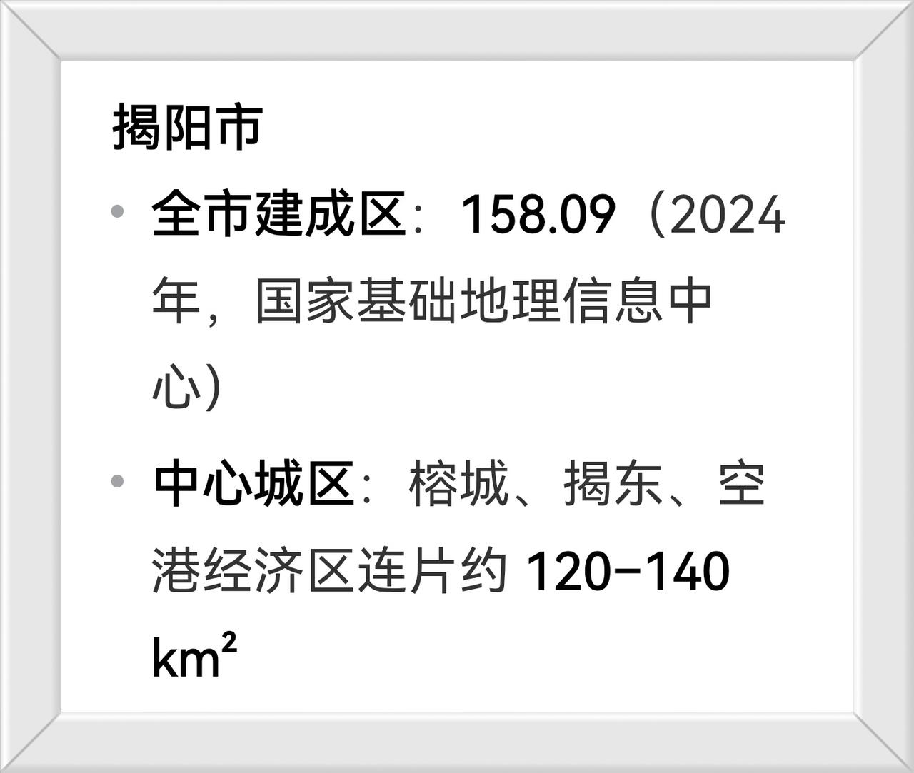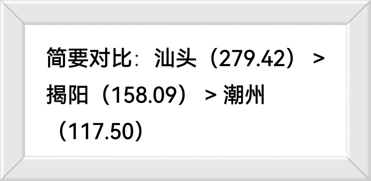 广东省潮汕三市建成区面积(2023年一2024年官方数据) 三市比较: 汕头>揭