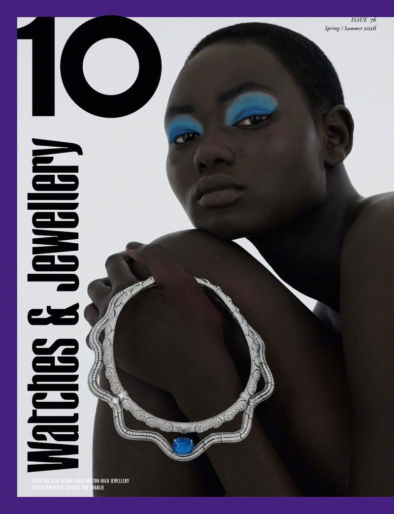 10 Magazine S/S 2026 珠宝腕表主题,黝黑肤色衬美钻光芒。模特: Ateta Jok 摄影: Antoine and Charlie 封面大赏