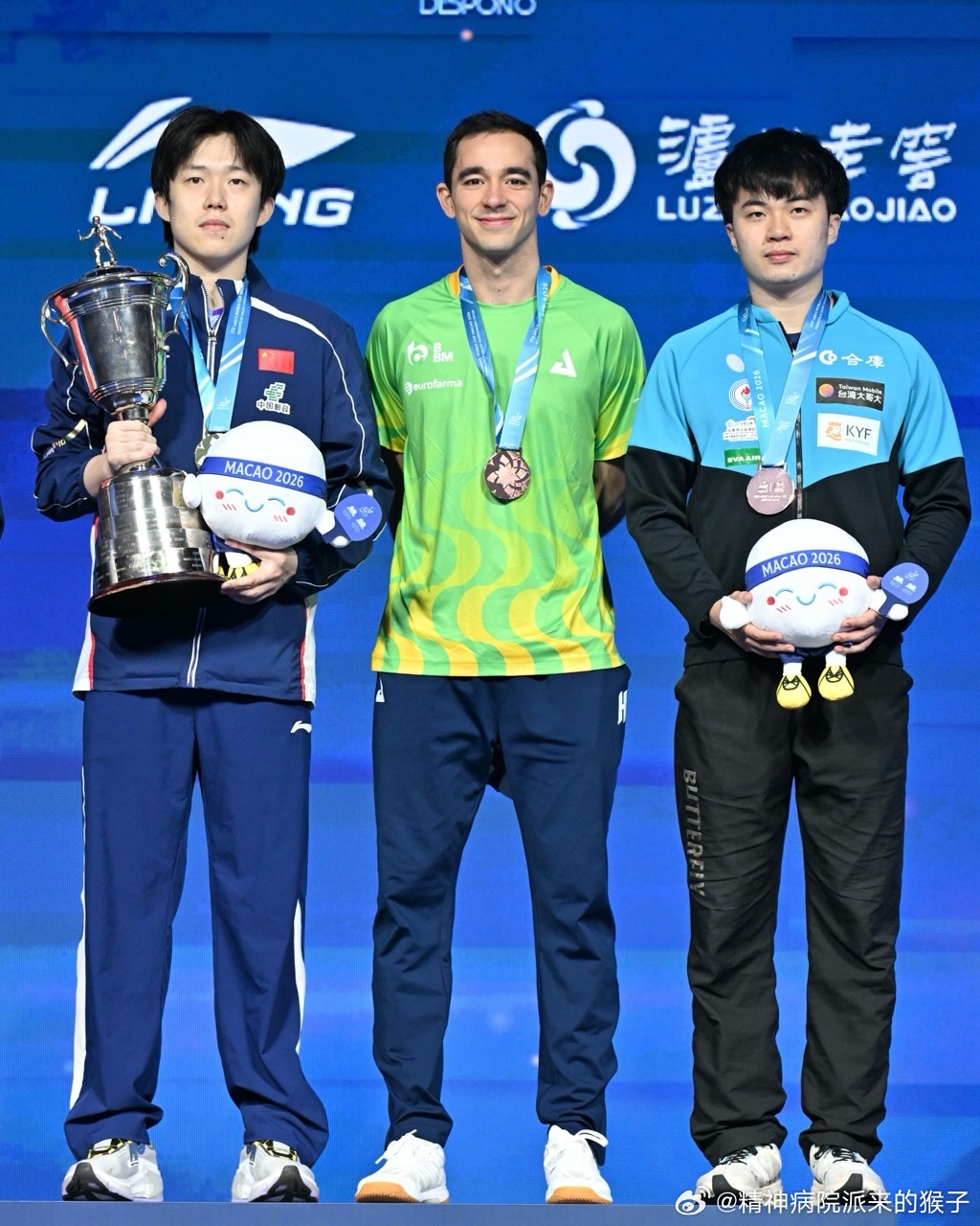 许昕羡慕了!!澳门世界杯颁奖台上,王楚钦,松岛辉空,林昀儒都是左手,只有雨果是