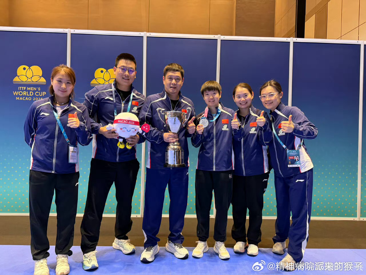 2026年澳门乒乓球世界杯邱贻可教练赛后分享了国乒大合影以及与孙颖莎的合影🏆?