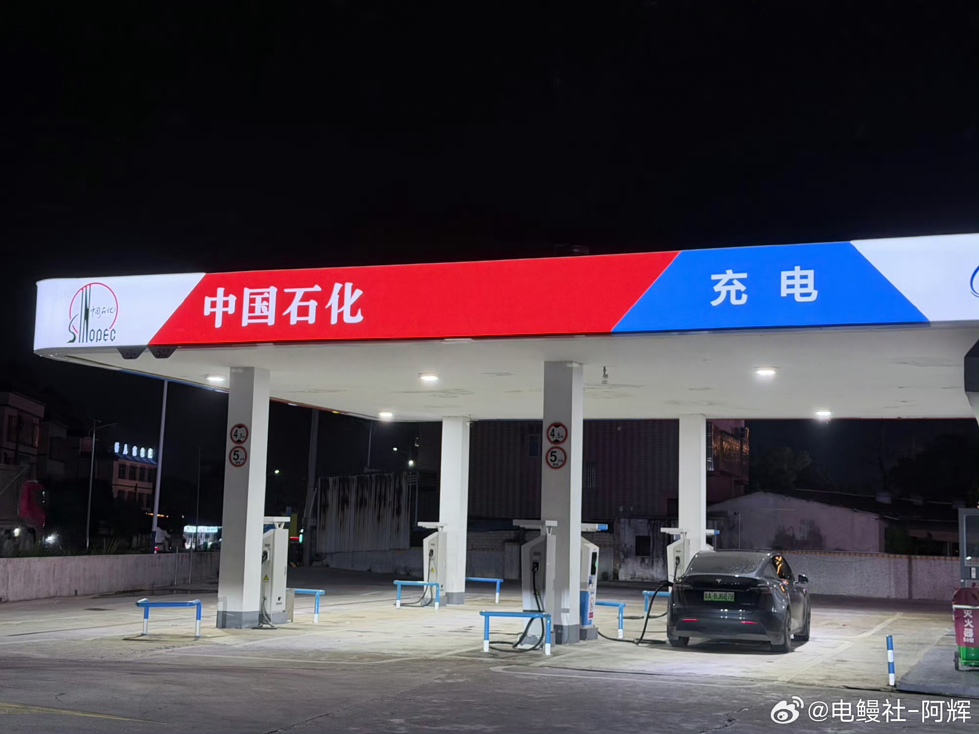中石化的充电站,只能加电不能加油,网友说:这是典型的油改电,空间利用很差,这个桩