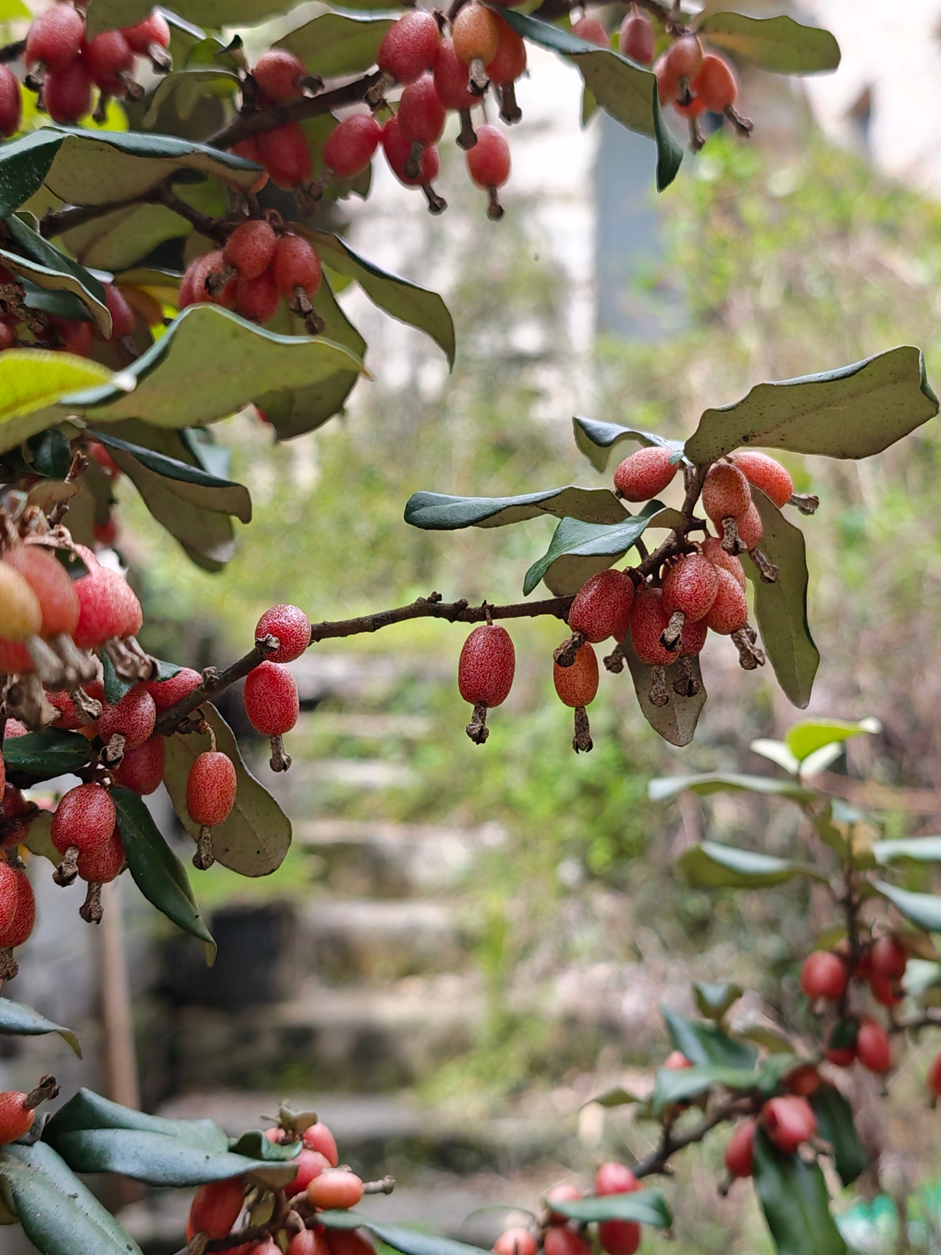 在山上小树叶也很有灵性的样子迎着风一摇一摆跟羊奶果长得一样的果子 肉少核大酸唧唧