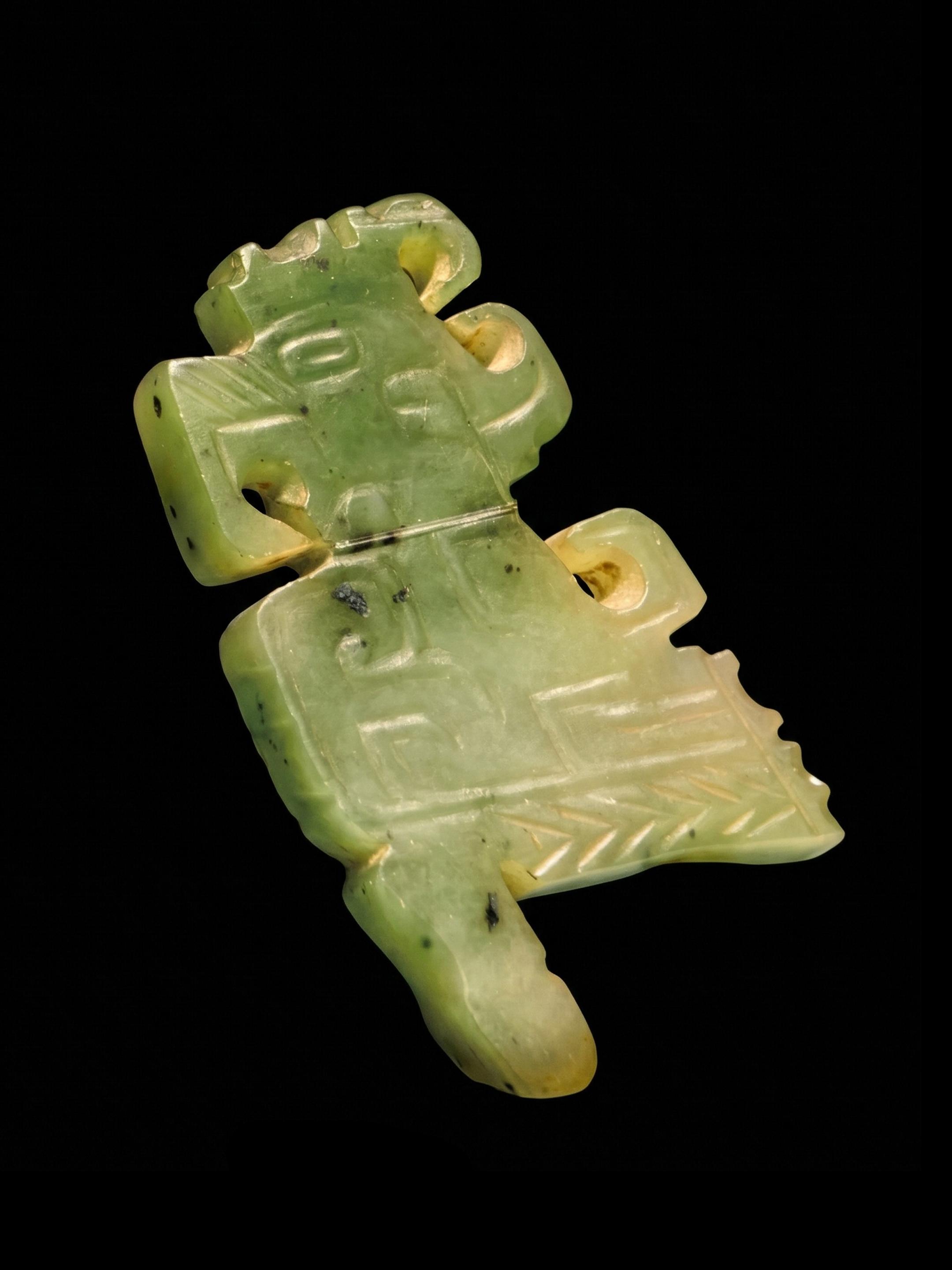 工匠在片状玉石上,刻画出方折与勾曲